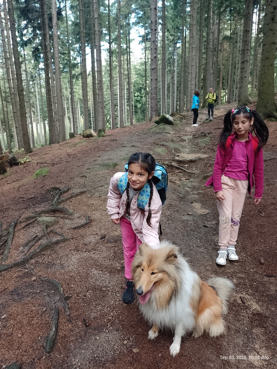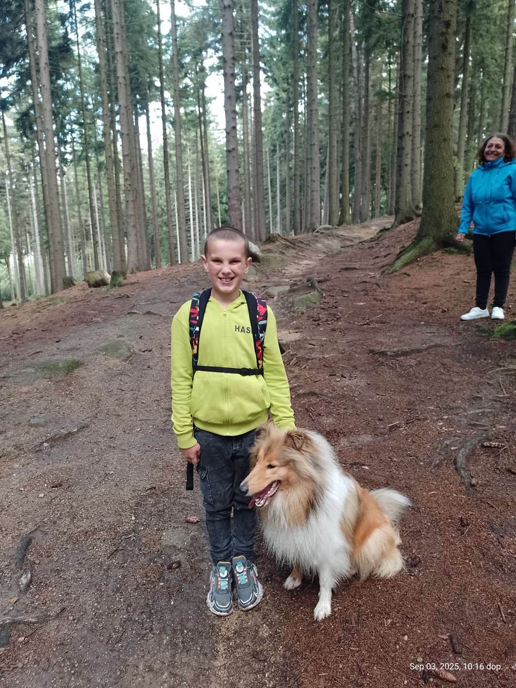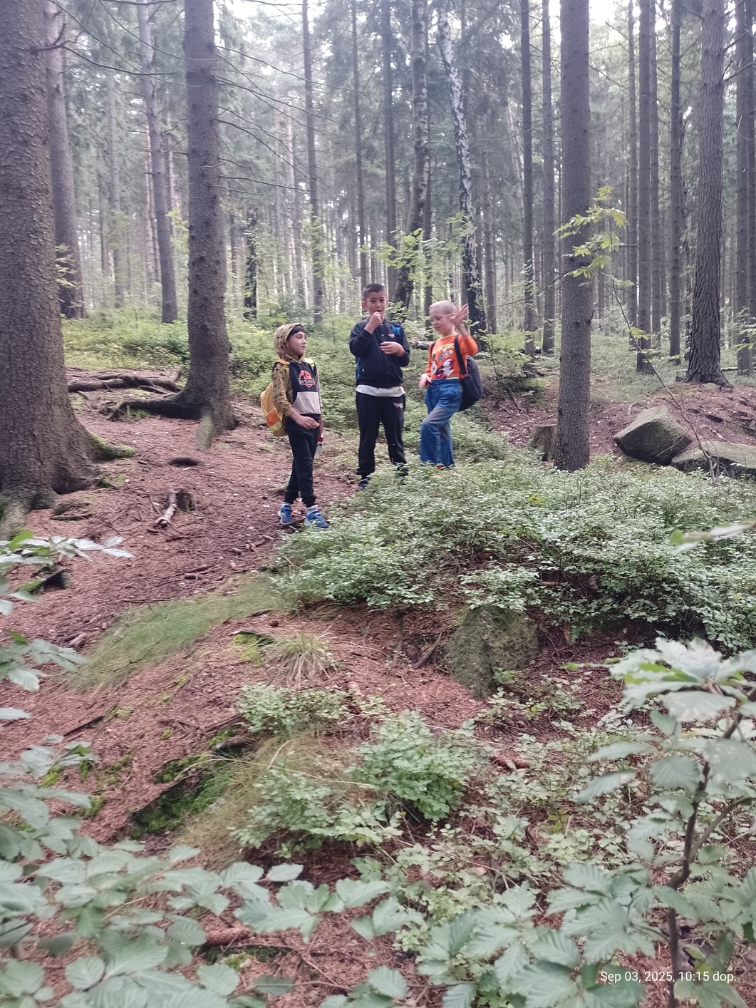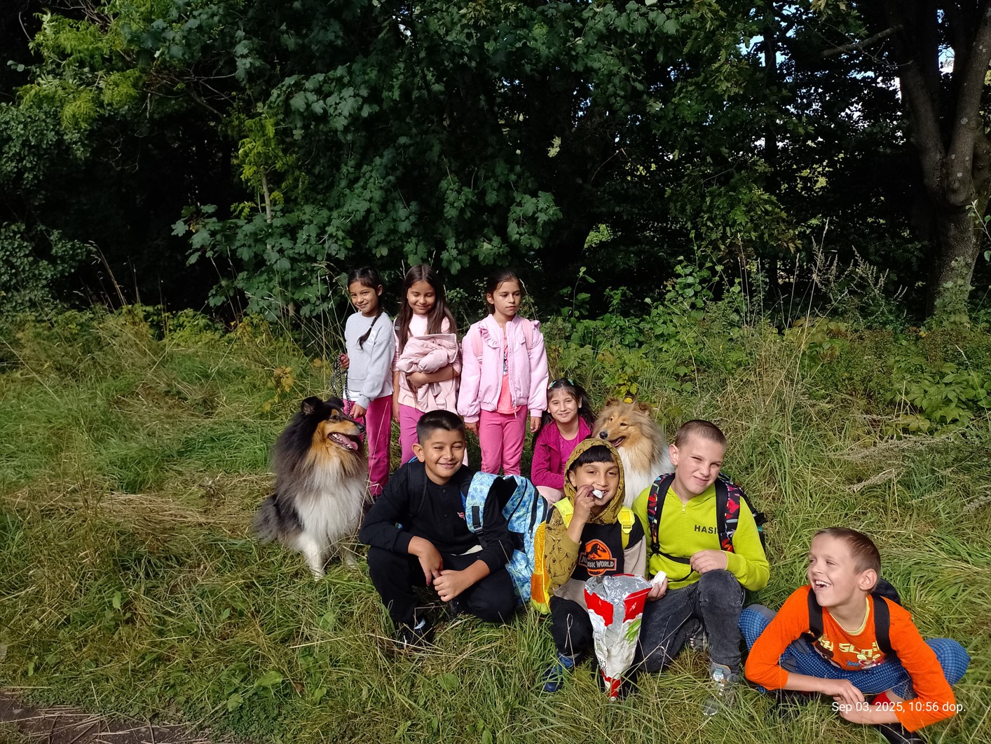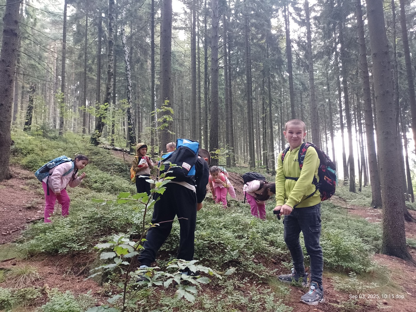 Ve středu 3. 9. jsme v rámci harmonizačního dne vyrazili k Pivovarským rybníkům. Cestou k rybníkům jsme vyzvedli pejsky paní učitelky. V lese jsme si s nimi krásně zaběhali. Za splněný pokyn od nás dostali pamlsek. Kromě běžců se z nás stali i sběrači. Les byl ještě plný borůvek. Vydařilo se i počasí a sluníčko nám svítilo na cestu. Do školy jsme se vrátili s fialovou pusou a rukama.