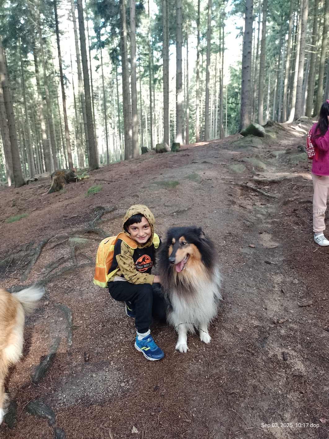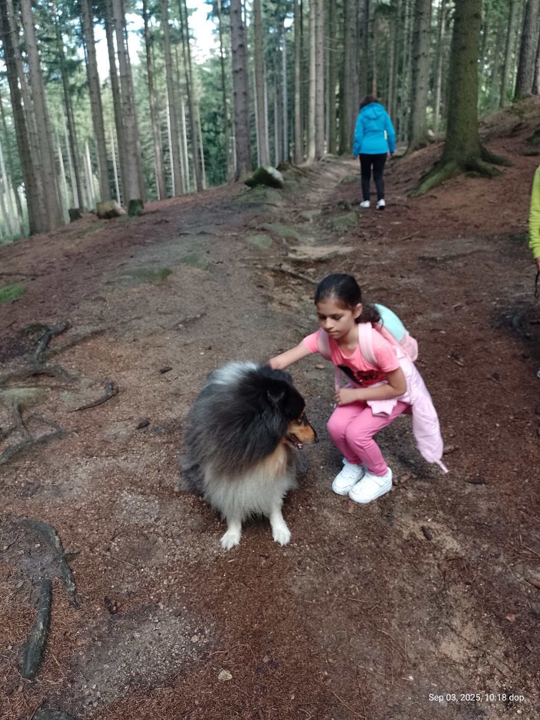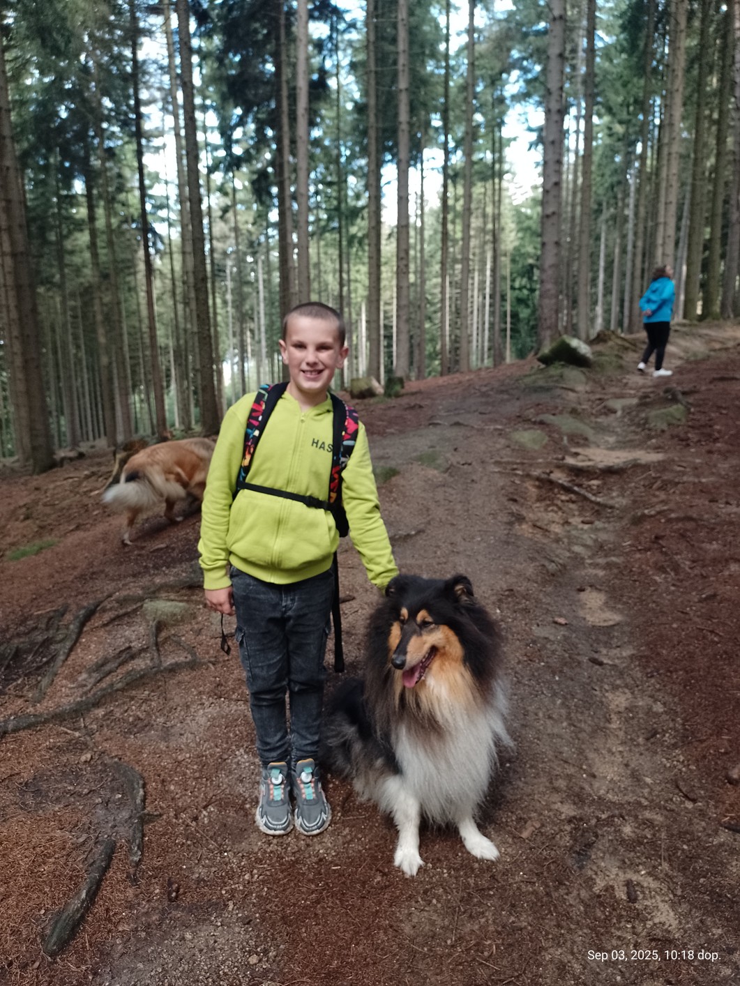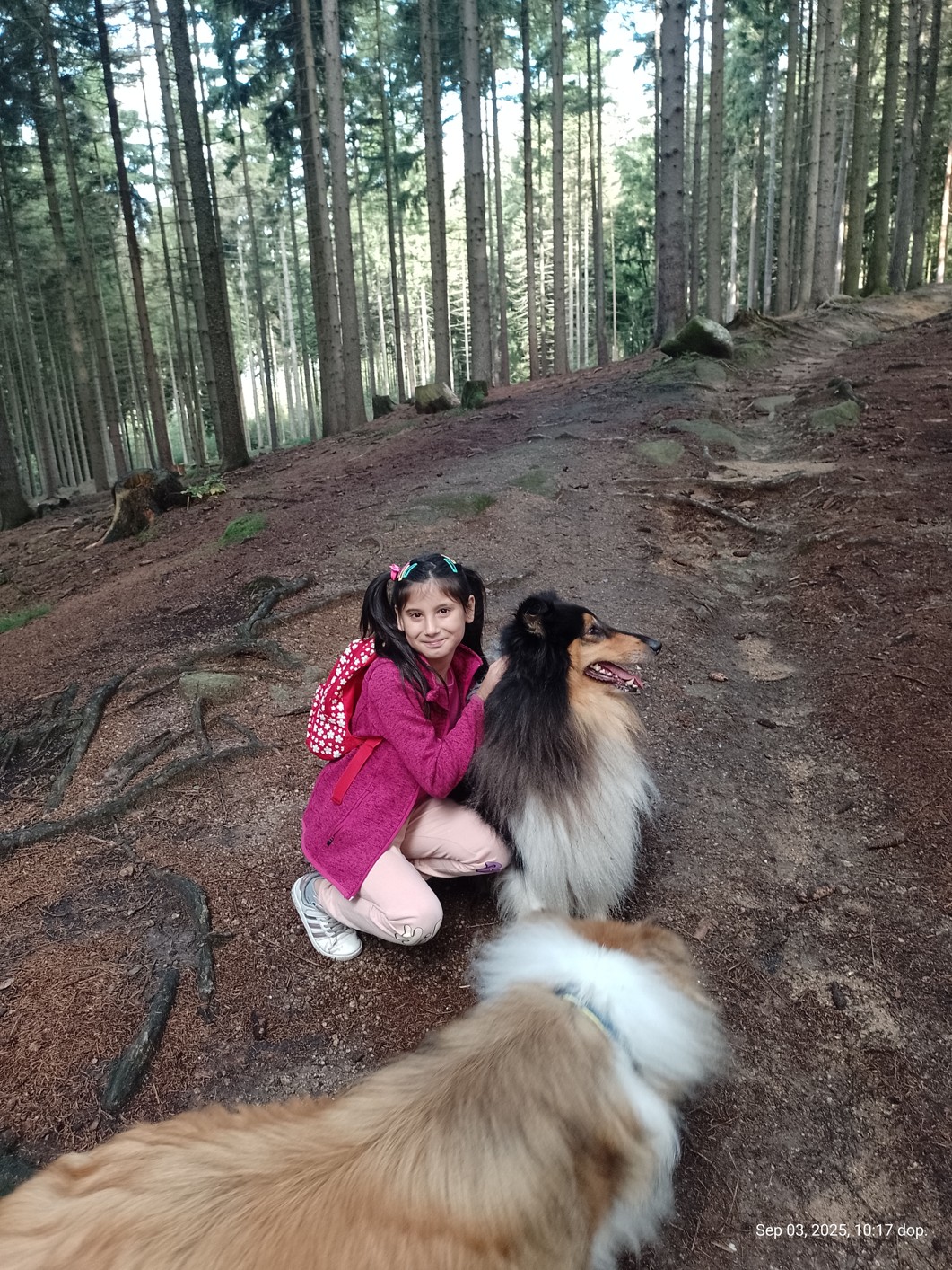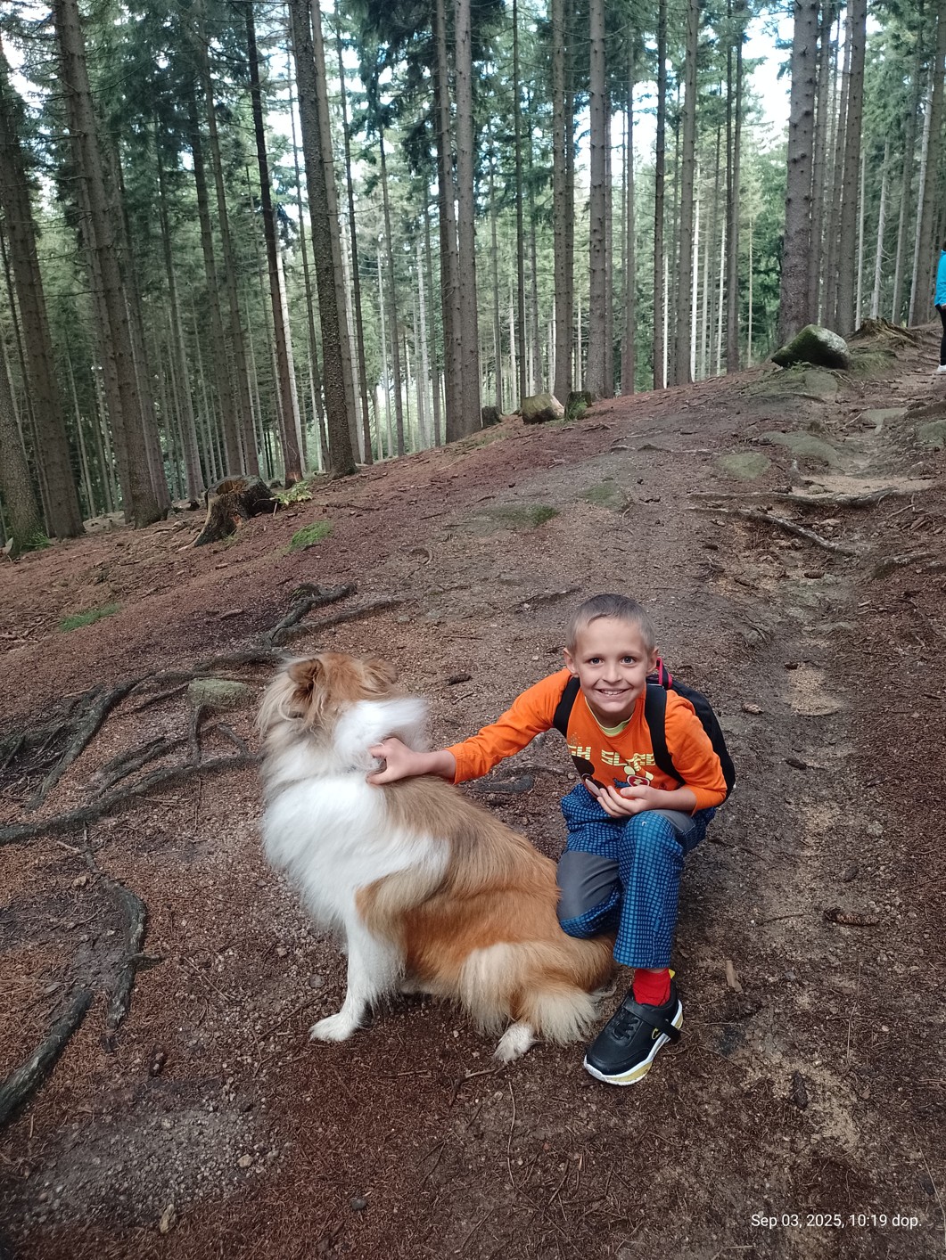 Ve středu 3. 9. jsme v rámci harmonizačního dne vyrazili k Pivovarským rybníkům. Cestou k rybníkům jsme vyzvedli pejsky paní učitelky. V lese jsme si s nimi krásně zaběhali. Za splněný pokyn od nás dostali pamlsek. Kromě běžců se z nás stali i sběrači. Les byl ještě plný borůvek. Vydařilo se i počasí a sluníčko nám svítilo na cestu. Do školy jsme se vrátili s fialovou pusou a rukama.