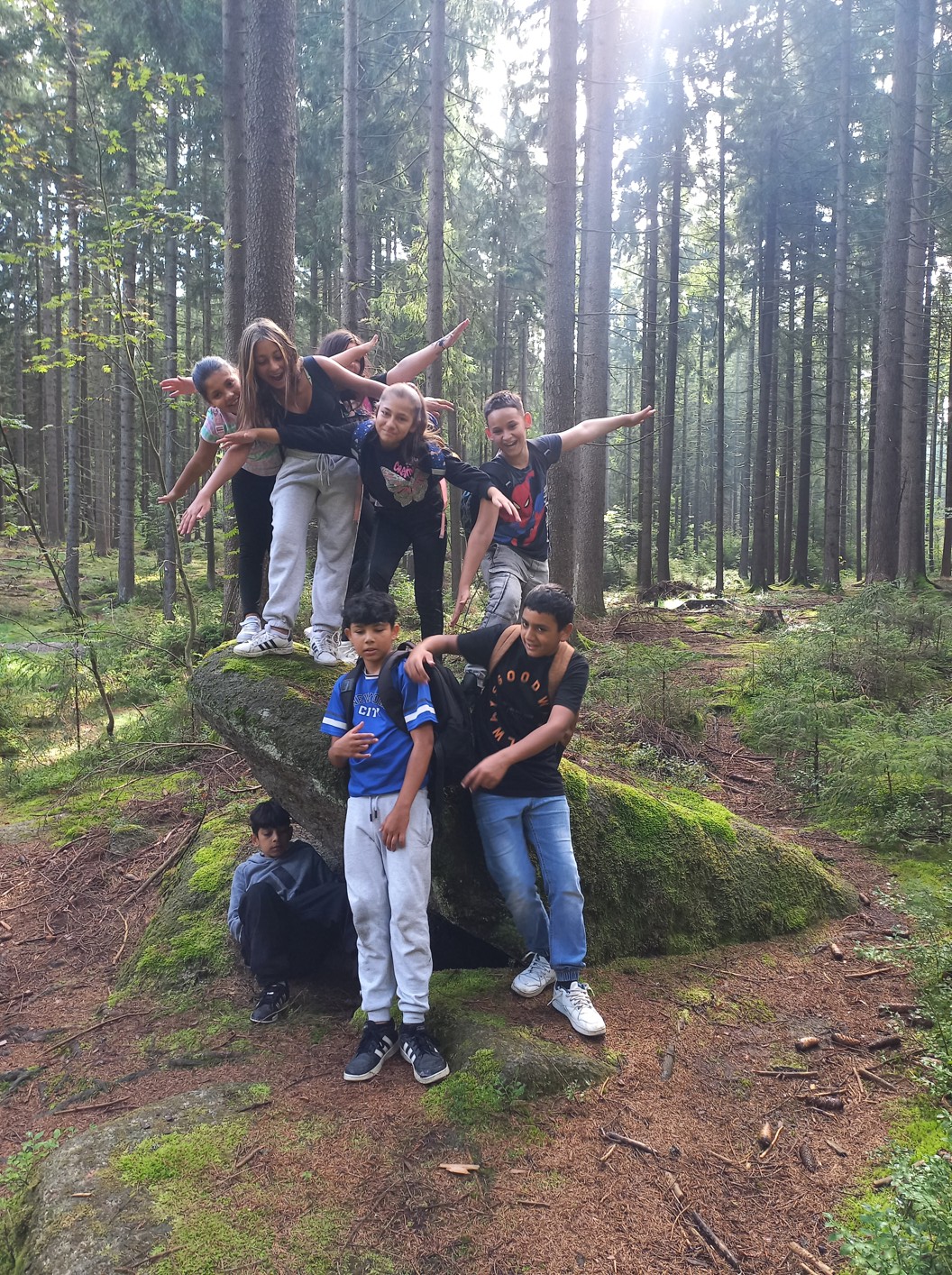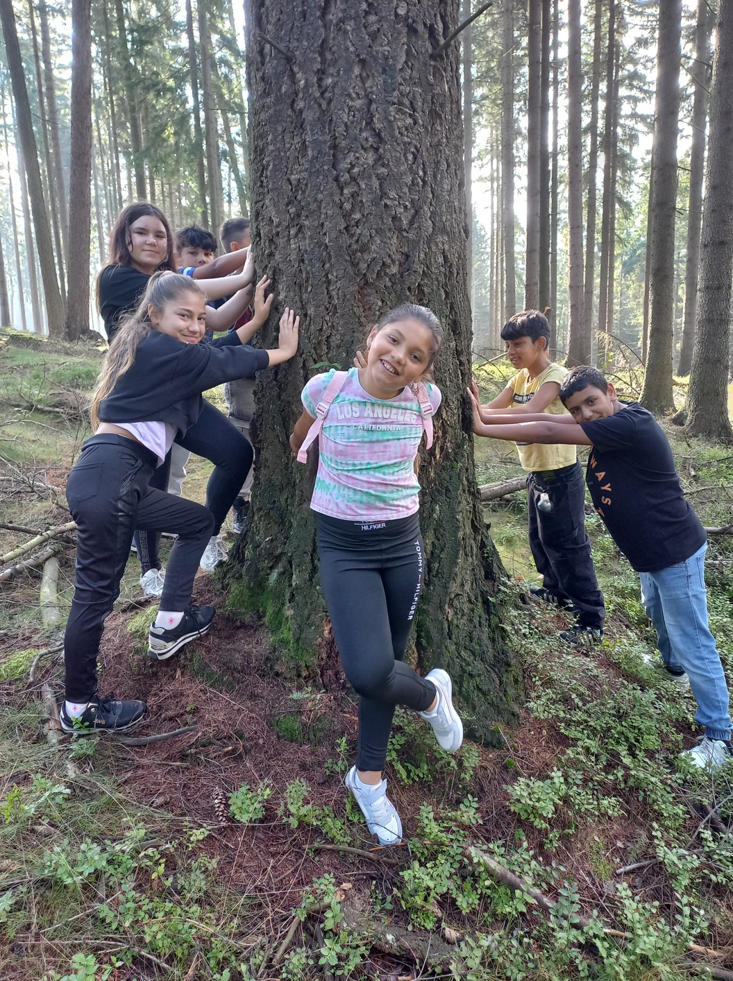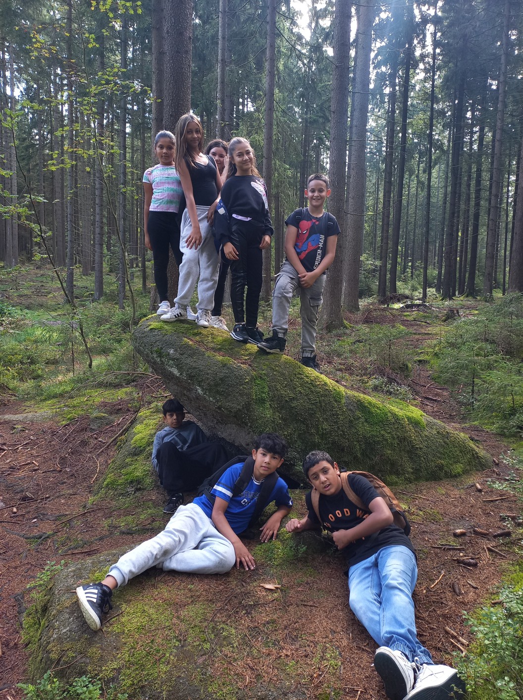 Harmonizační den 5.třídy se vydařil úžasně. Vydali jsme se do lesa najít stromy, jejichž jehličí voní po citrusech, konkrétně po pomerančích. Tyto stromy jsme hladili a předali nám mnoho energie. Cesta vedla nejprve k Novoveskému koupališti a pak už jsme šli „cestou necestou“, lesem, okolo potůčku, stavěli jsme domečky z přírodních materiálů. Pokračovali jsme lesními stezkami dál, až jsme se dostali k trafostanici na „Dolině“ a zpět do školy. Cestou jsme hráli hry, které nás bavili a zažili jsme při nich mnoho legrace.
