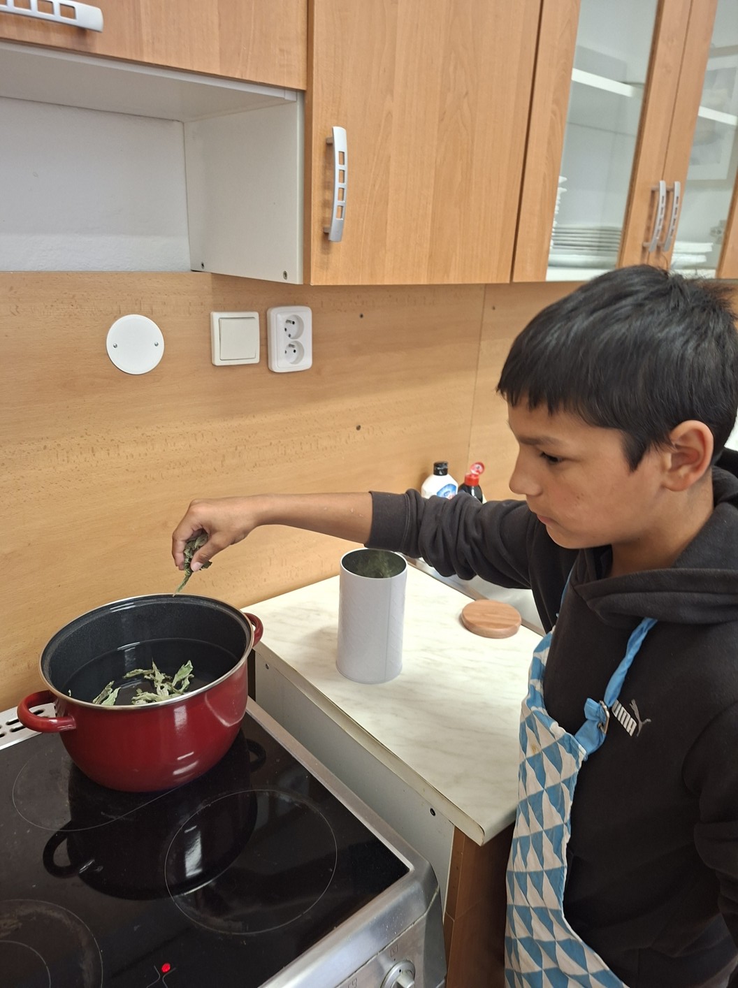 I letos jsme se pokusili ze semínek vypěstovat určité druhy zeleniny a bylin. Naseli jsme ve třídě dýni, červenou řepu a mátu. Položili jsme to na sluníčko mezi okna a pečlivě rosili a zalévali a čekali, až nám to začne růst. Již brzy jsme se dočkali prvních výhonků. Do truhlíku na zahradě jsme zasadili již naklíčené loňské brambory. V květnu jsme rostlinky z oken zasadili do záhonu na pozemku. Po prázdninách jsme přišli do školy a zjistili, že nám vyrostli brambory, červená řepa a máta. Rozhodli jsme se z úrody udělat bramborovou kaši. Jako přílohu ke kaši chtěly děti párky. K pití jsme si uvařili lahodný čaj z čerstvé máty a zbytek si nasušíme na zimu. S vařením a přípravou nám pomáhala 1. třída. Vaření nás bavilo a vše nám moc chutnalo.