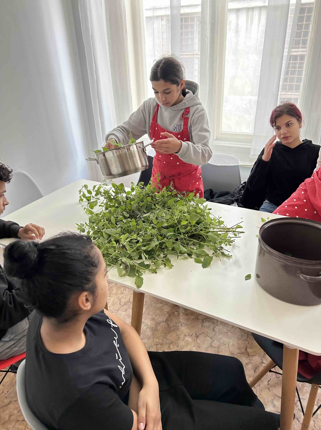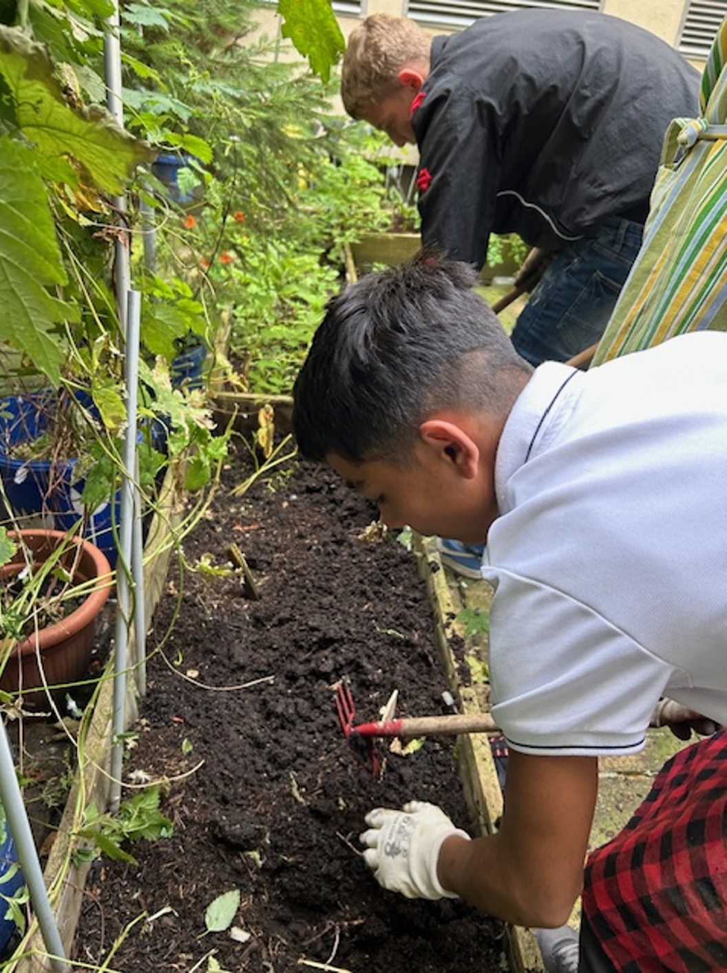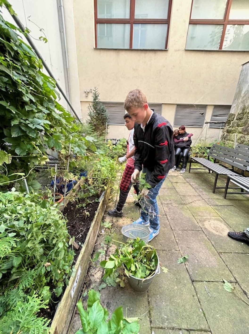 V loňském školním roce jsme ještě jako sedmáci do našeho záhonku přesadili předpěstované sazenice dýní. Také jsme si do záhonku vyseli mrkev, zasadili cibulky cibulí a česneku a vysadili jsme tam hlízy brambor. Než jsme odešli na prázdniny, tak jsme záhon poctivě obdělávali a snažili se likvidovat nepříjemné škůdce. Proti slimákům jsme však neměli moc velkou šanci. Sežrali nám jak dýně, tak i naťové výhonky od již vzešlých cibulí. Když jsme se po prázdninách vrátili, tak jsme v záhonu našli krásně bujarou meduňku, která nám tam roste a po přerytí záhonku jsme objevili i pár hlíz brambor. My jsme však nesmutnili a šli jsme si k brambůrkám koupit potřebně ingredience, které nám nevzešli a upekli si výborné bramboráky. Meduňku jsme otrhali a vyrobili si z ní sladký dravý sirup. Práce nám šla od ruky a výsledek byl opět skvělý.