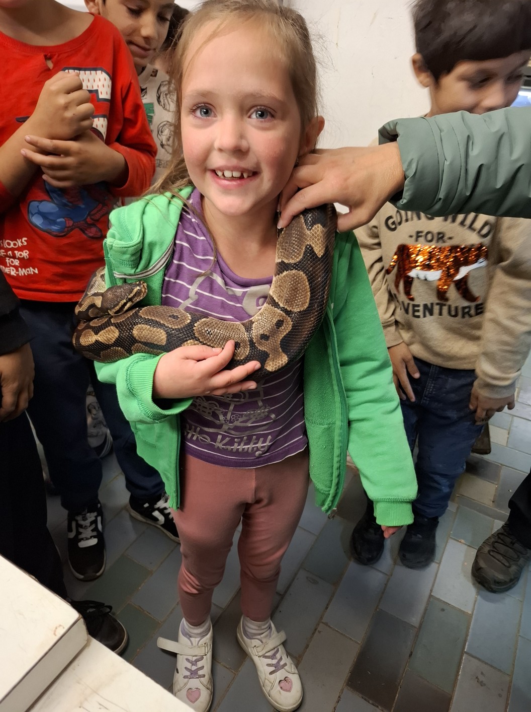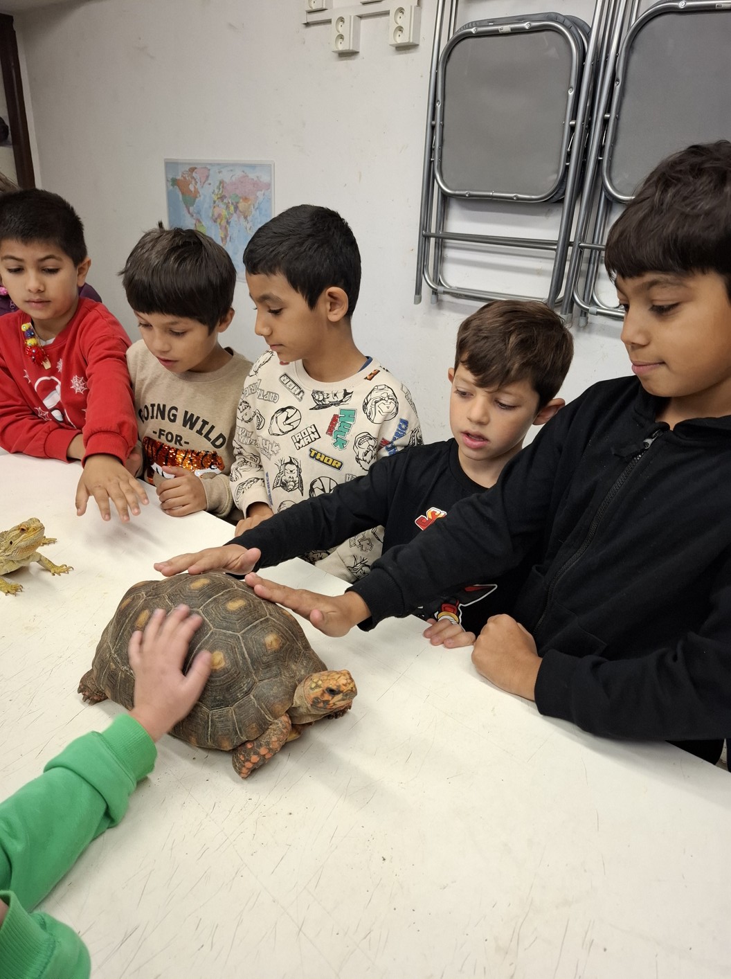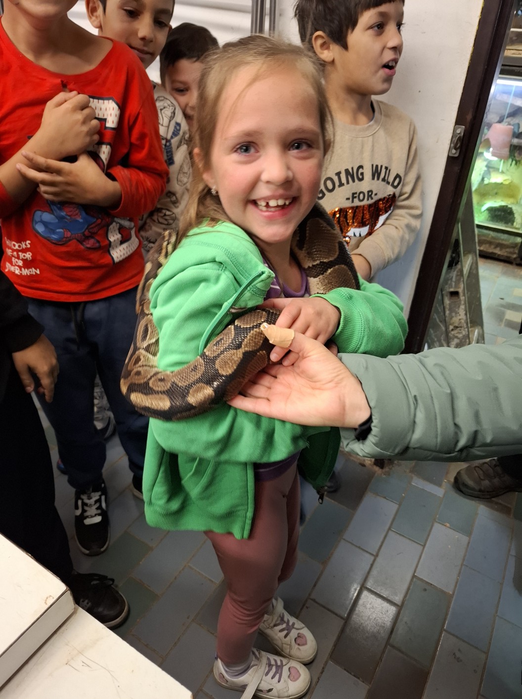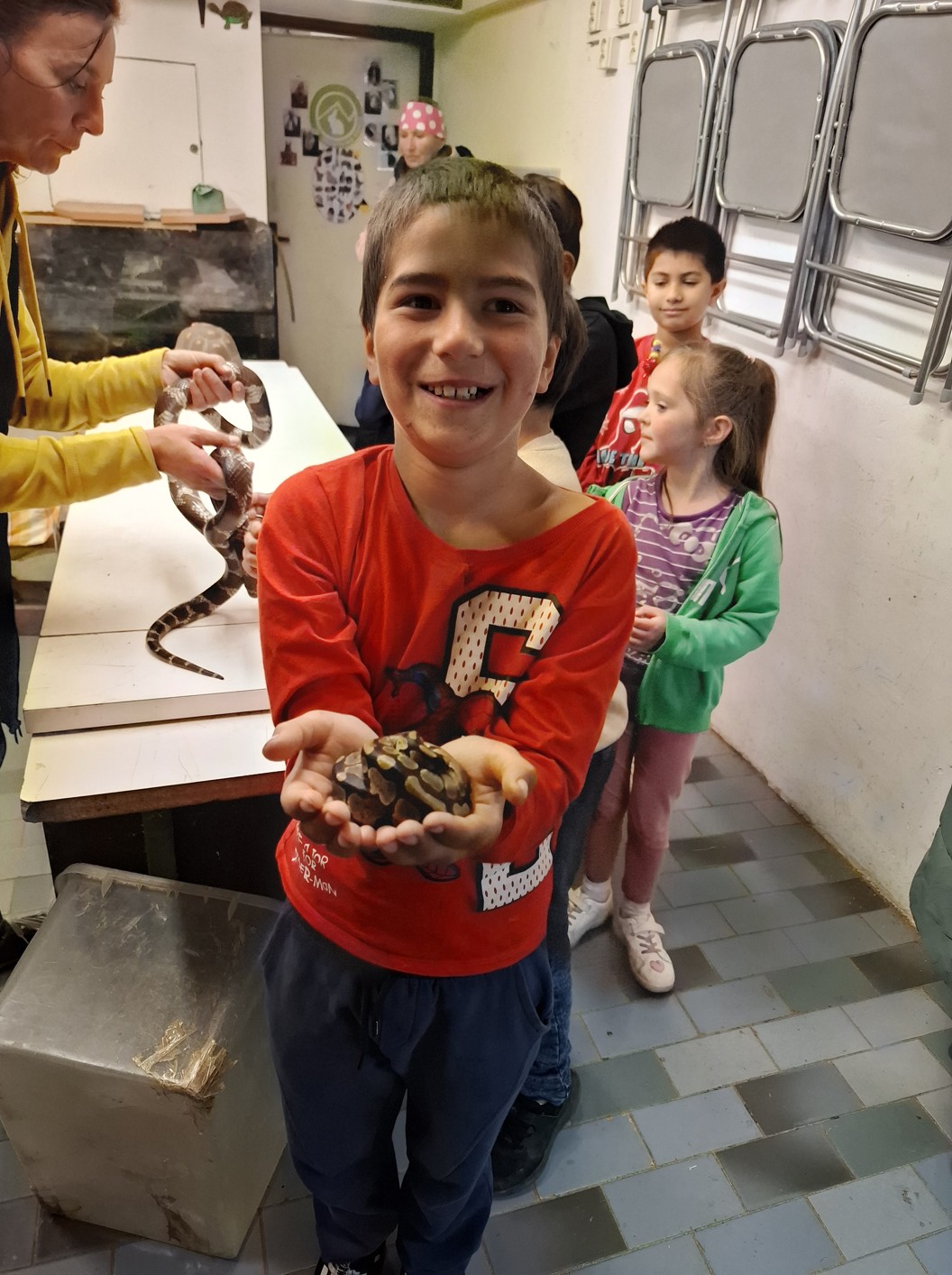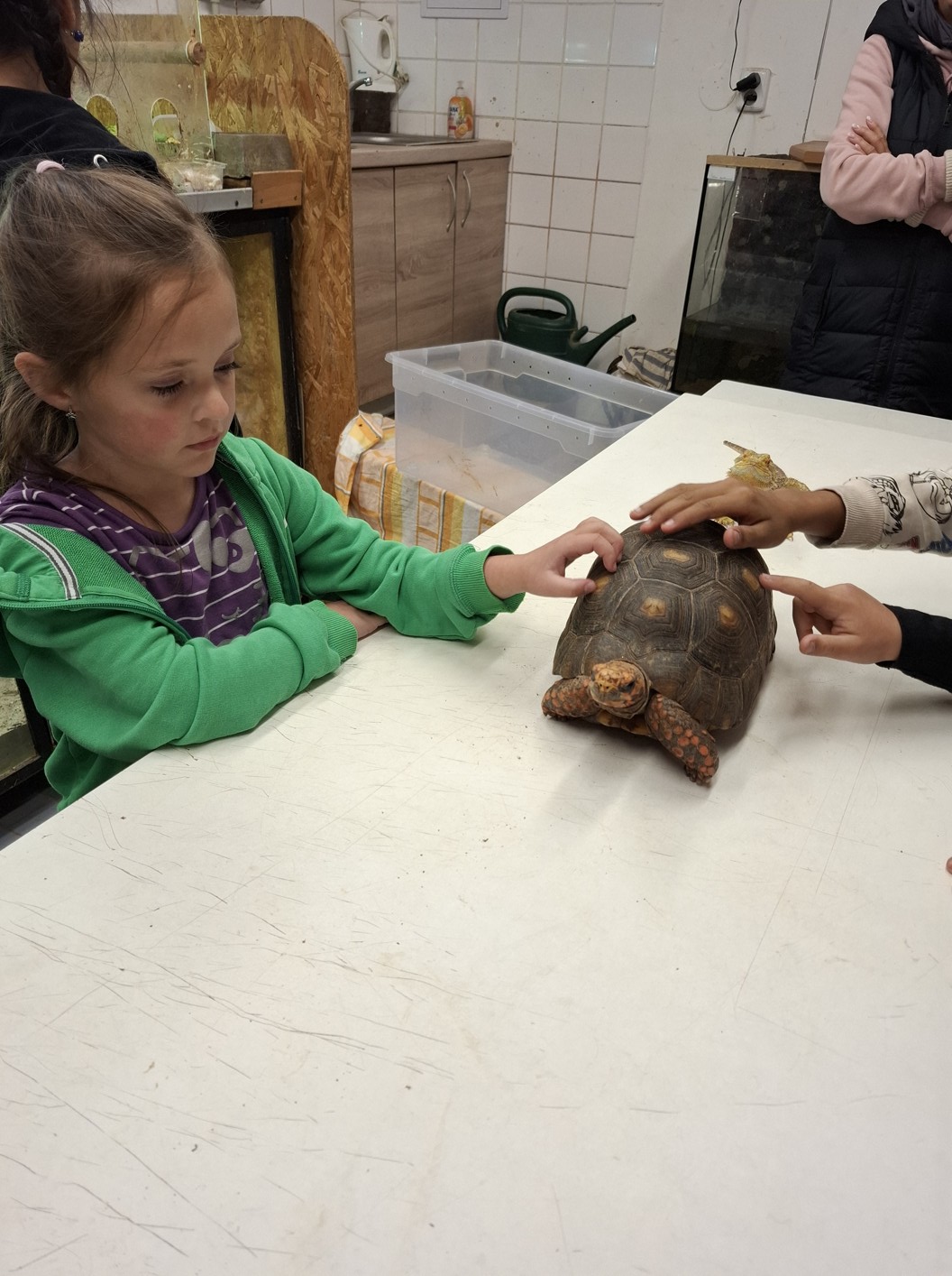 V pátek 3. října jsme se s dětmi z 1.,2.,4. a speciální třídy zúčastnili akce Den zvířat ve Vikýři. Na začátku jsme plnili zábavné a poučné úkoly na jednotlivých stanovištích. Poté následovala komentovaná prohlídka herpetologické stanice, kde si děti mohly zblízka prohlédnout a dokonce i pohladit různá zvířátka – od hadů, želv a agam přes morčata a králíky až po osmáky a činčily. Pro všechny to byl nejen příjemně strávený den, ale také skvělá příležitost, jak se dozvědět něco nového ze světa zvířat.