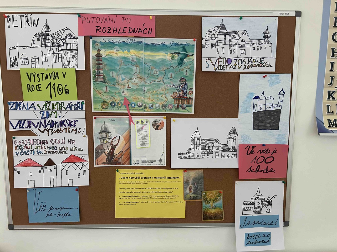 V pátek 24. 10. jsme zahájili celoroční projekt „Putování po rozhlednách a soutocích“. První výpravu jsme směřovali na Petřín, odkud jsme mohli vidět, kam všude naše poznávací cesty povedou. Dokázali jsme, že se jen tak něčeho nezalekneme, a i přes zimu a déšť některé třídy ušly i kolem 10 km. Odměnou nám byl výstup na rozhlednu, kde jsme spočítali schody, zjistili výšku i jiné zajímavosti. Na cestu jsme si vybrali i dvě karty ctností ze souboru „Ctnosti Vikyhrdinů“- slušnost a kořeny.