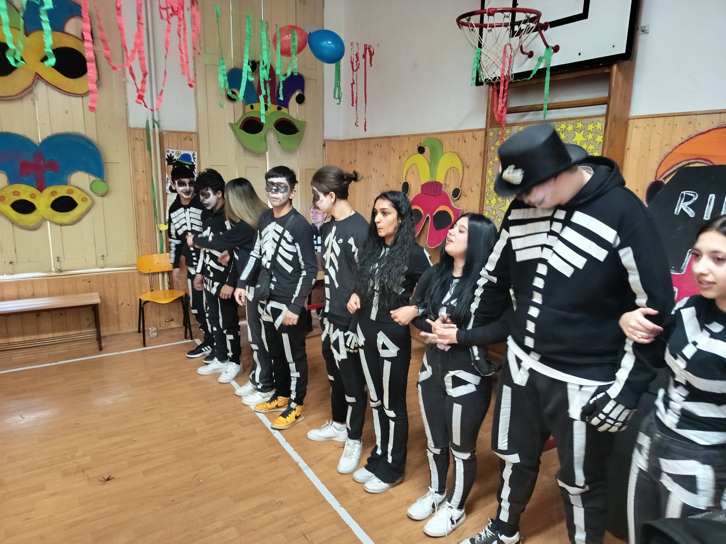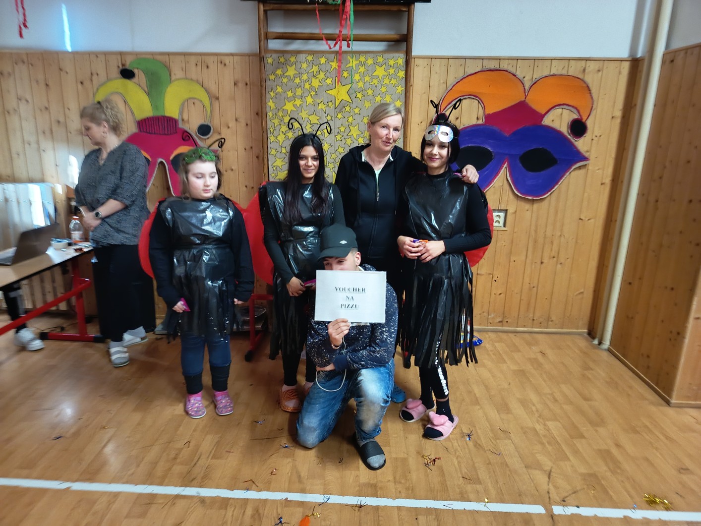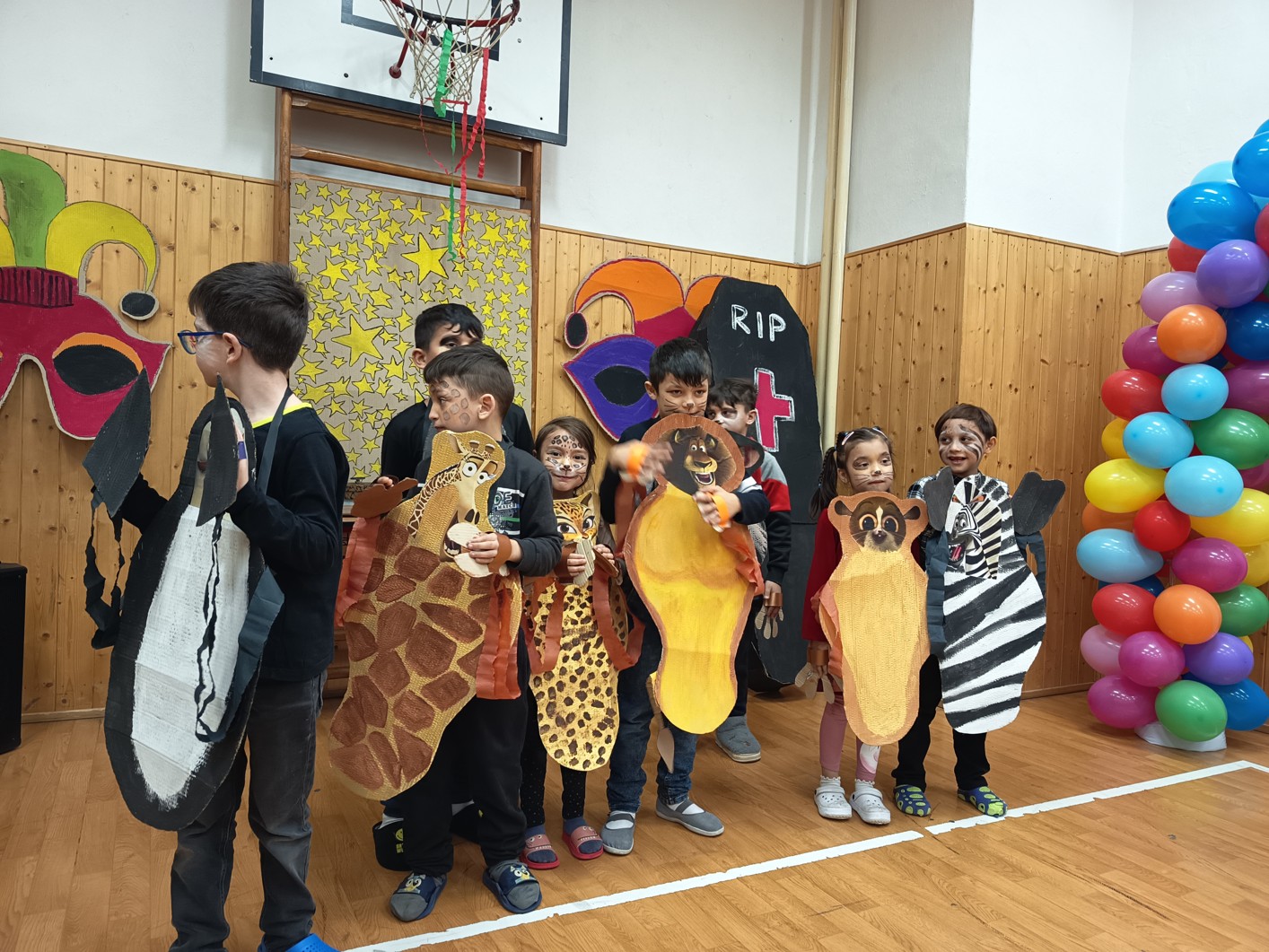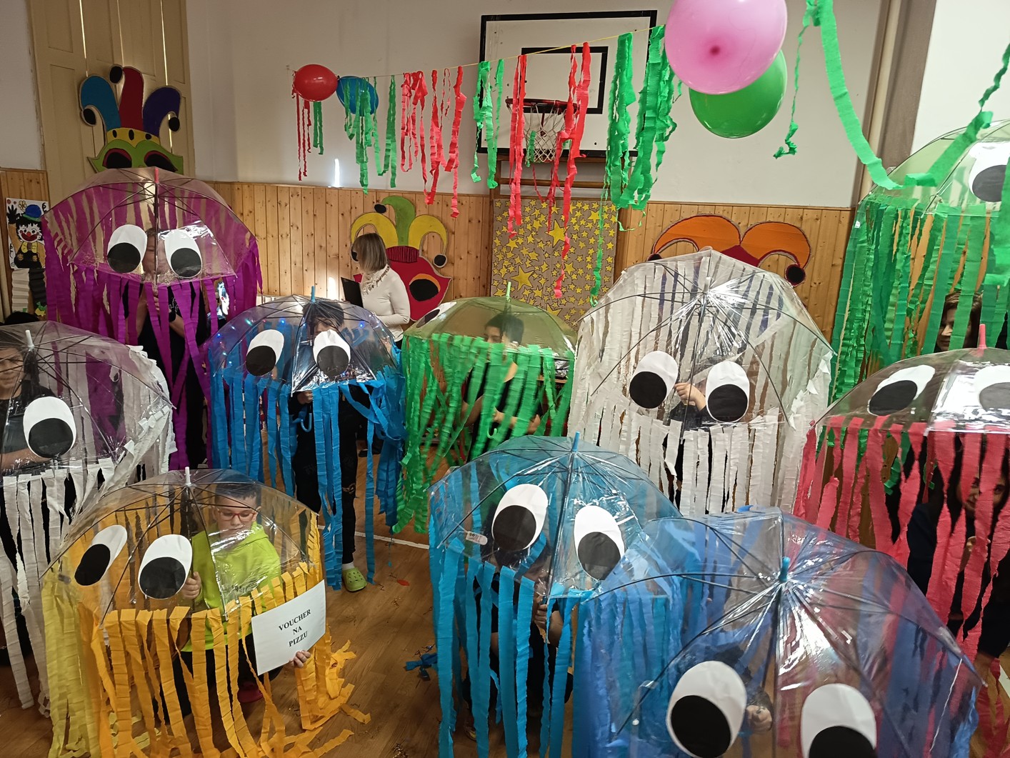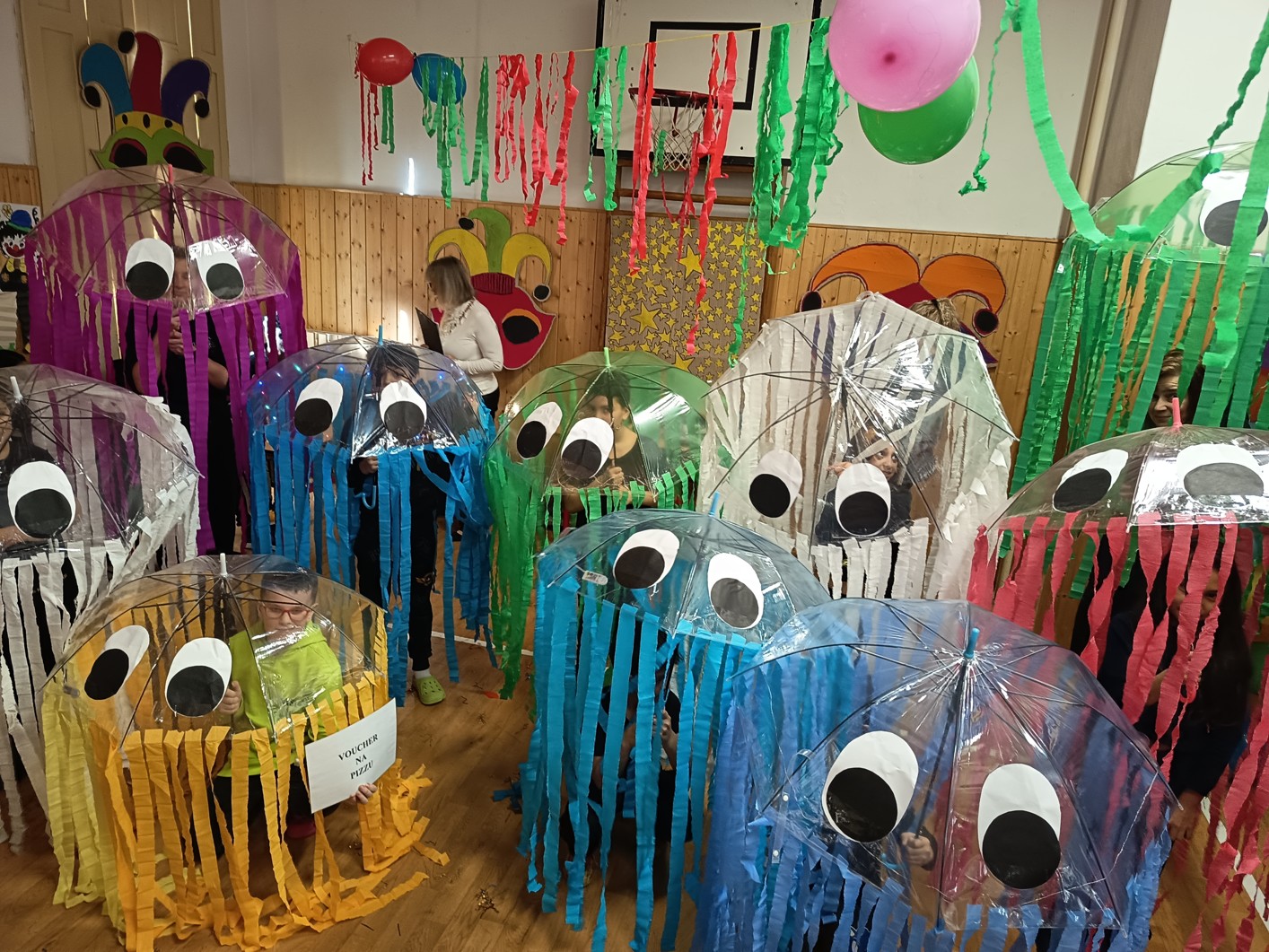 S blížícím se jarem se u nás každoročně koná karneval. I tento ročník zvolila každá třída jednotné masky, takže jsme tentokrát měli možnost vidět medůzy, berušky, kovboje, kostlivce a další masky. Většina tříd si navíc jako bonus připravila taneční vystoupení. Porota nakonec rozhodla o nejlepších maskách, ale rozdíly byly tak malé, že vítězy byli v podstatě všichni:-)
