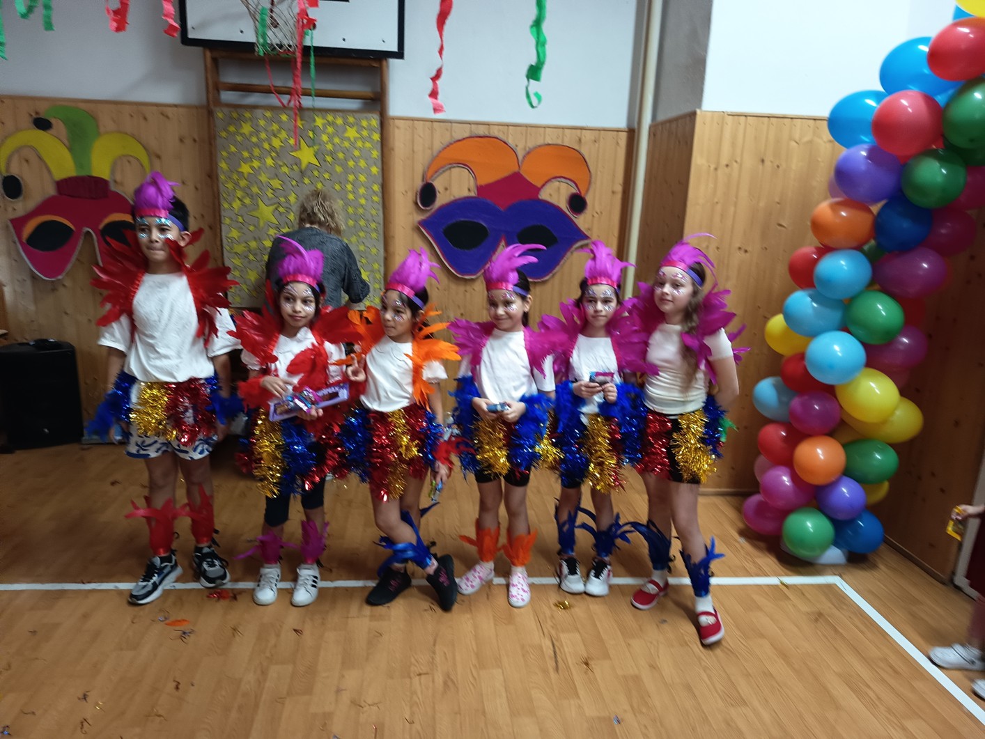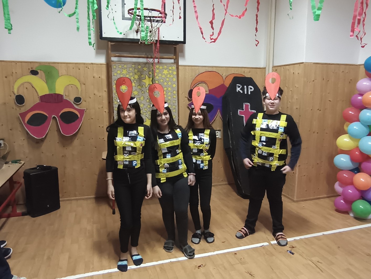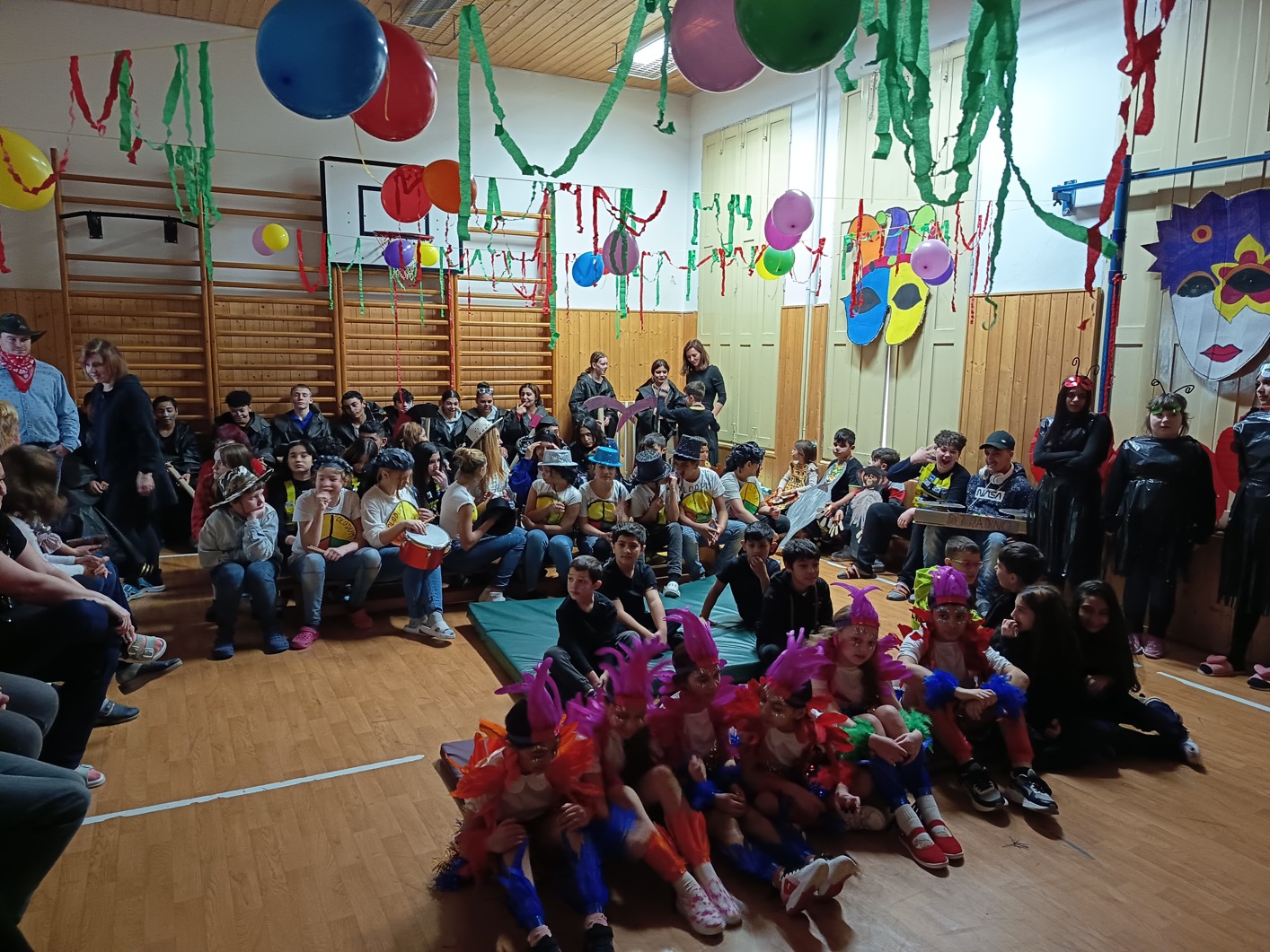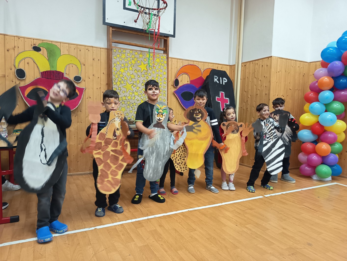 S blížícím se jarem se u nás každoročně koná karneval. I tento ročník zvolila každá třída jednotné masky, takže jsme tentokrát měli možnost vidět medůzy, berušky, kovboje, kostlivce a další masky. Většina tříd si navíc jako bonus připravila taneční vystoupení. Porota nakonec rozhodla o nejlepších maskách, ale rozdíly byly tak malé, že vítězy byli v podstatě všichni:-)