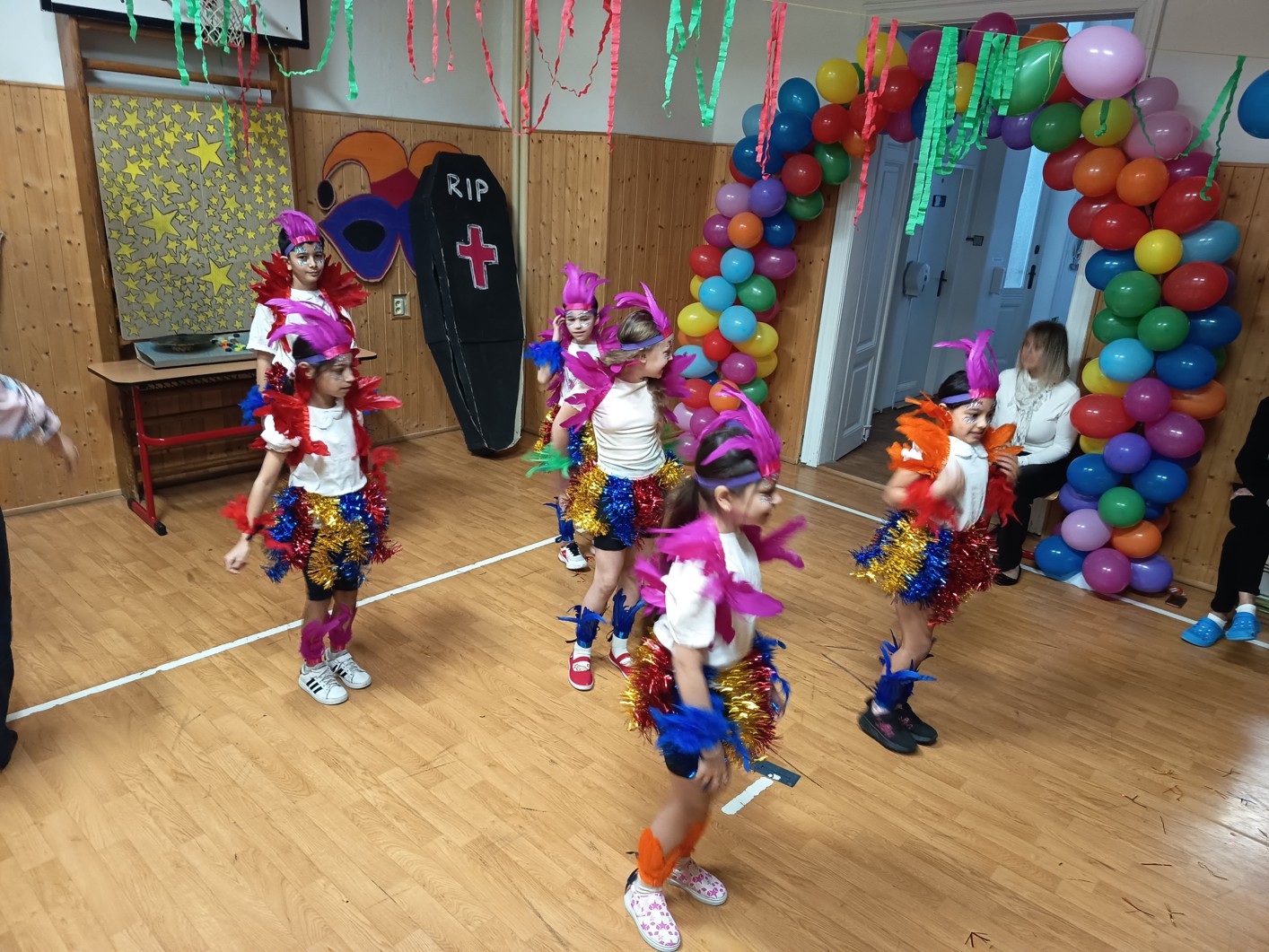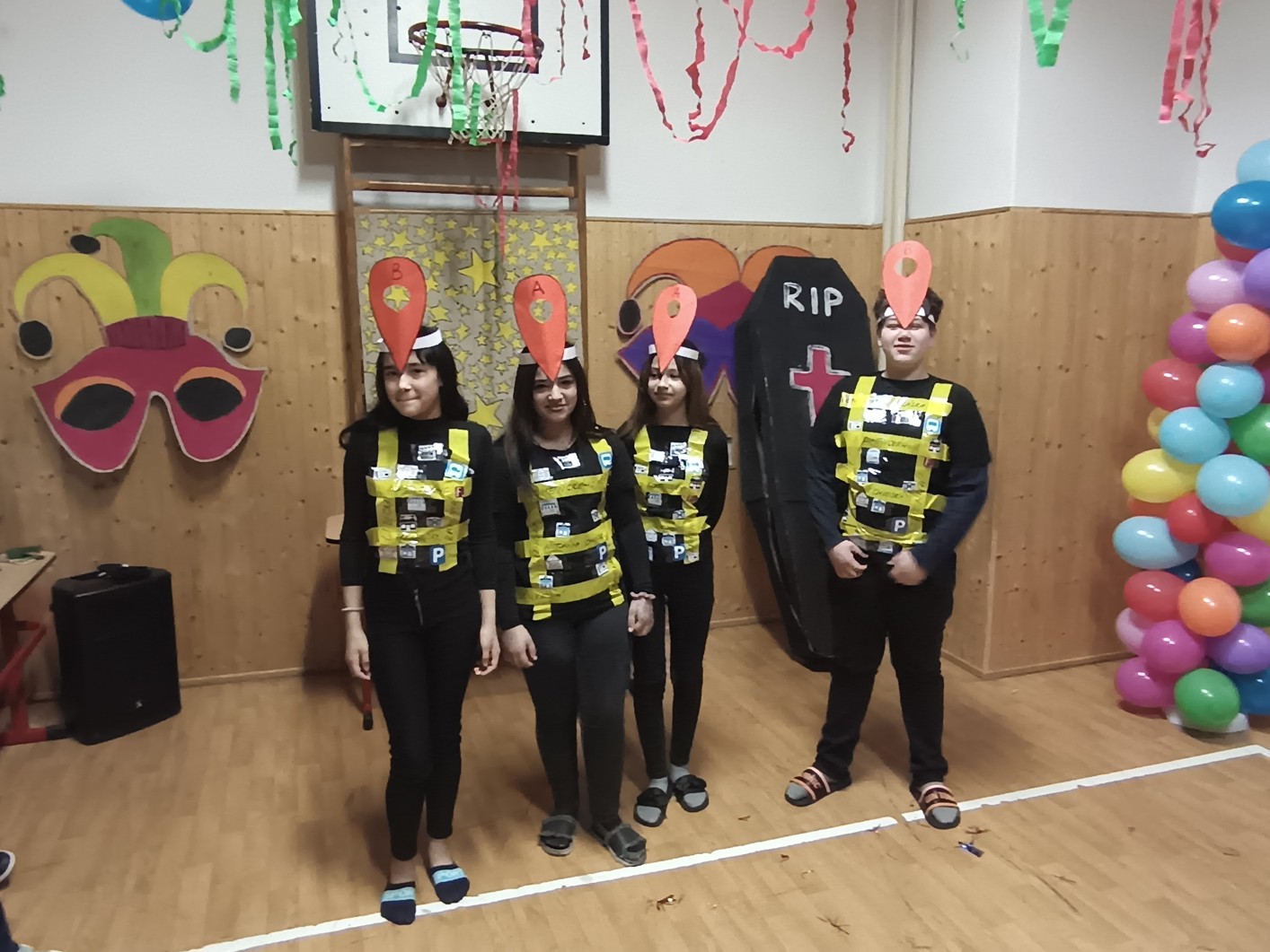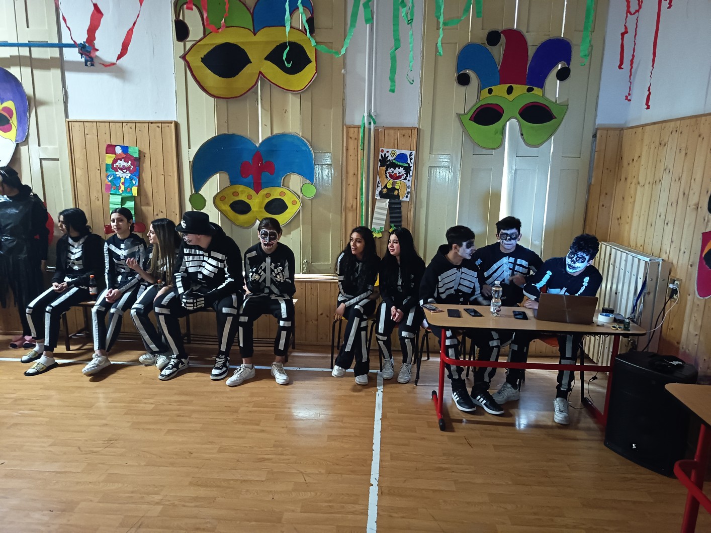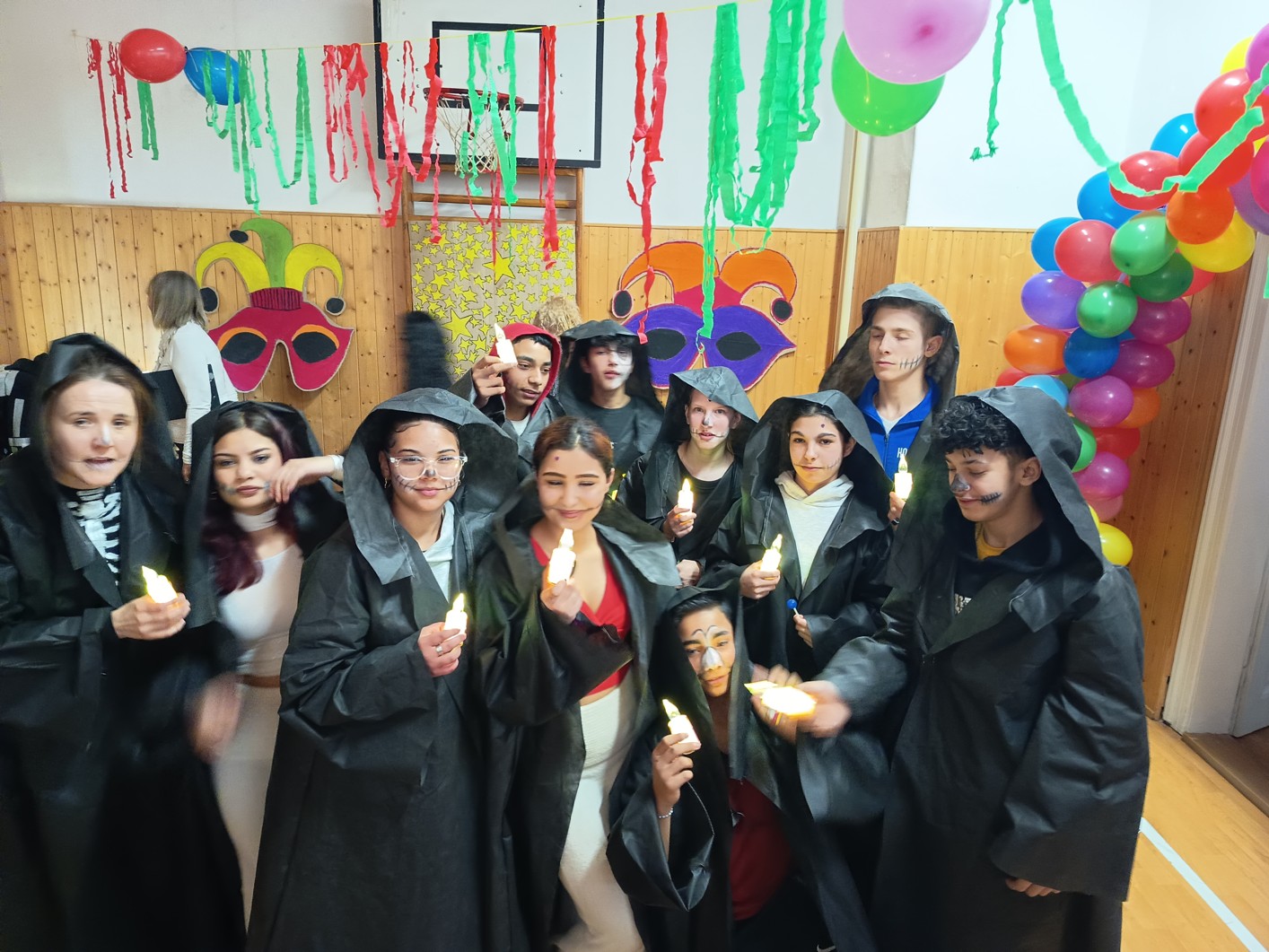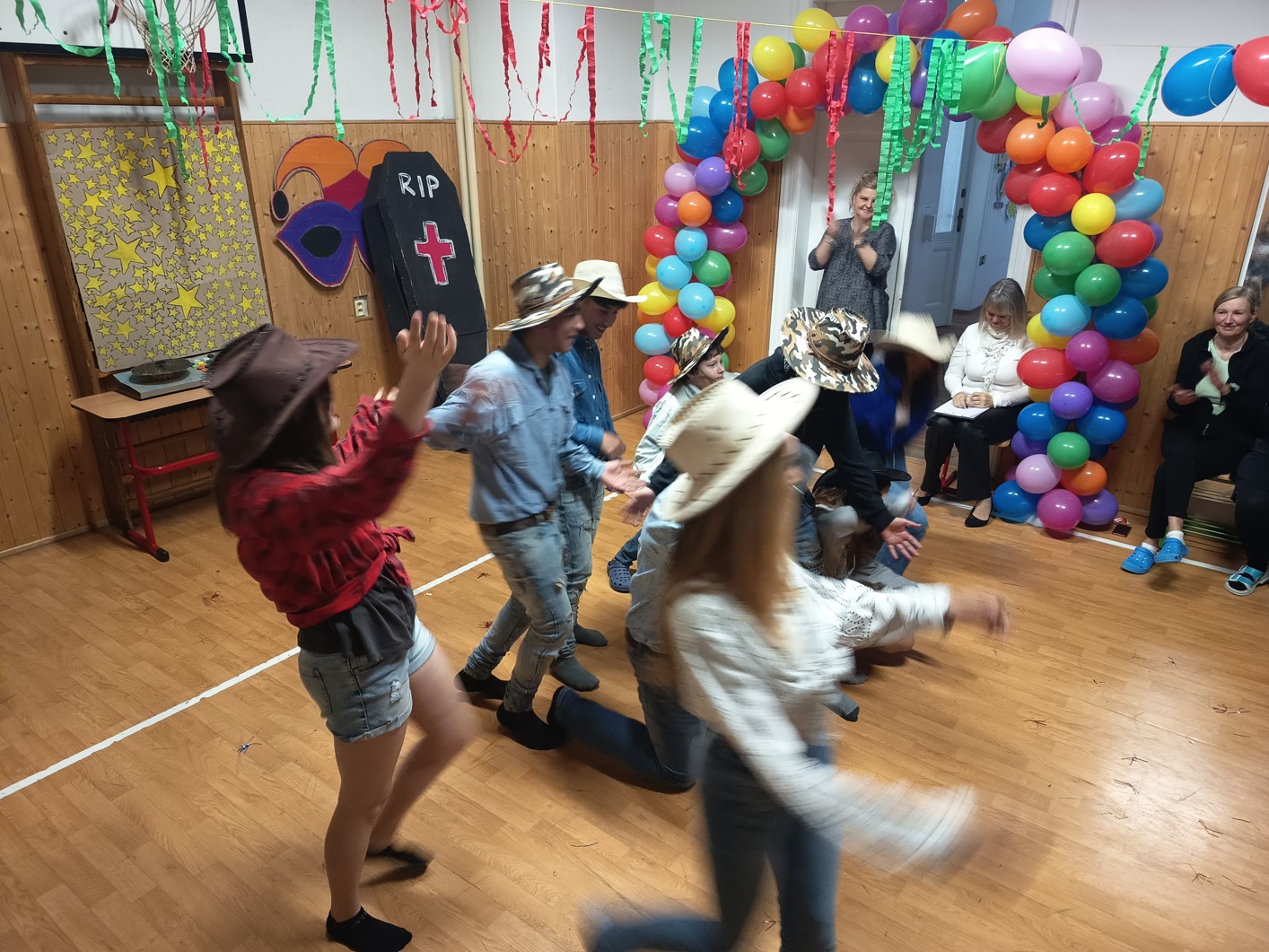 S blížícím se jarem se u nás každoročně koná karneval. I tento ročník zvolila každá třída jednotné masky, takže jsme tentokrát měli možnost vidět medůzy, berušky, kovboje, kostlivce a další masky. Většina tříd si navíc jako bonus připravila taneční vystoupení. Porota nakonec rozhodla o nejlepších maskách, ale rozdíly byly tak malé, že vítězy byli v podstatě všichni:-)
