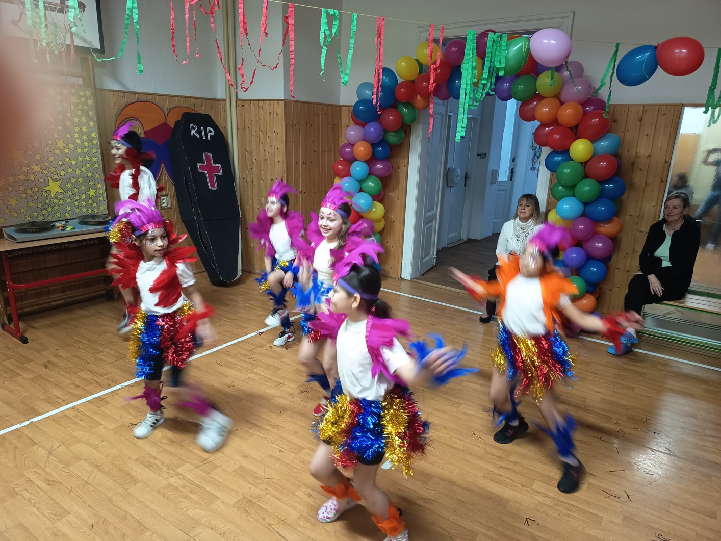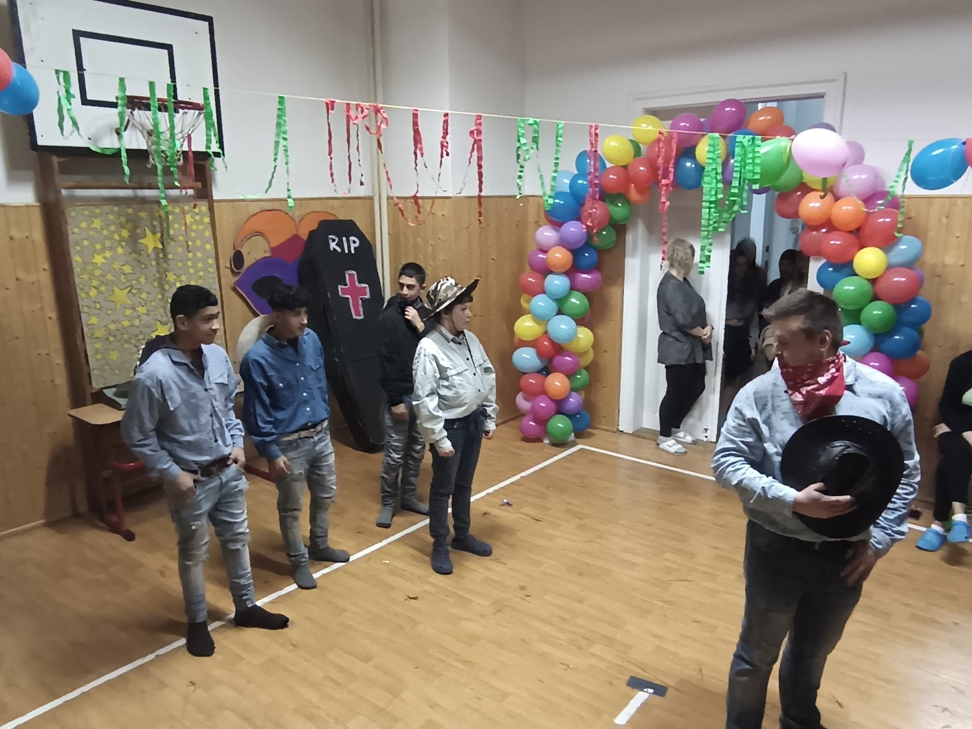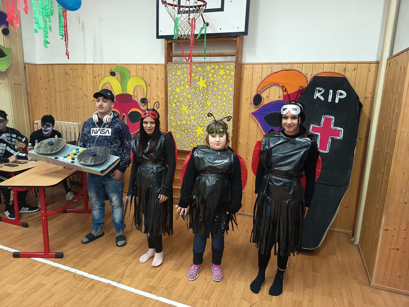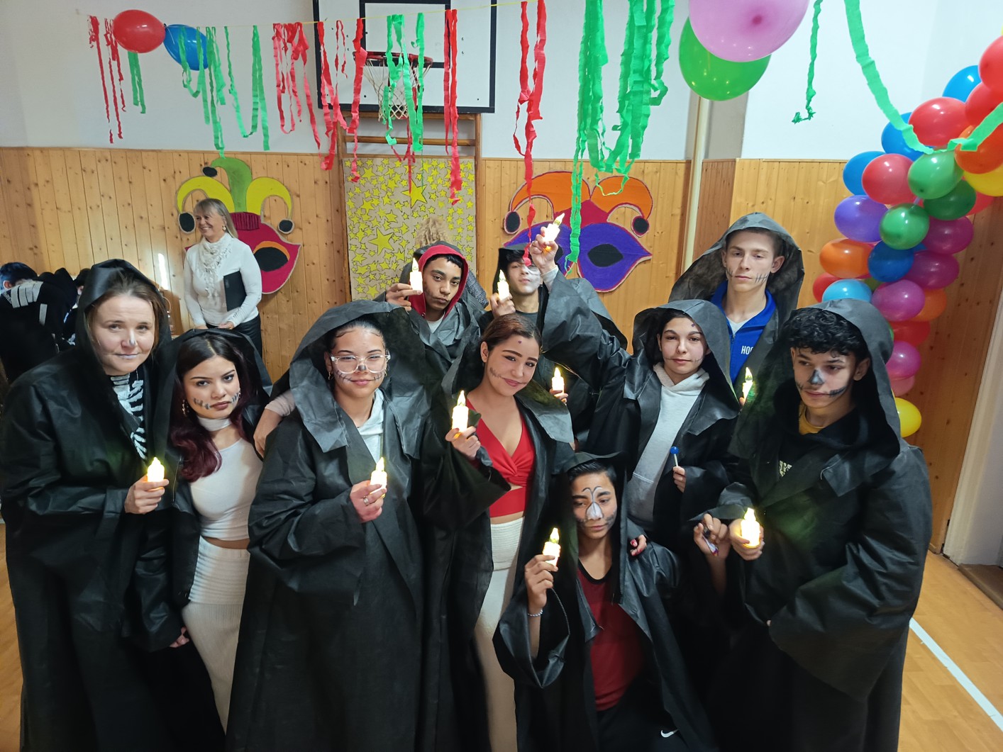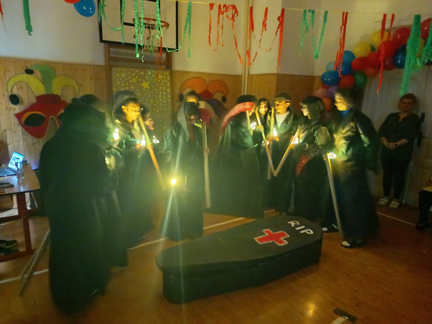 S blížícím se jarem se u nás každoročně koná karneval. I tento ročník zvolila každá třída jednotné masky, takže jsme tentokrát měli možnost vidět medůzy, berušky, kovboje, kostlivce a další masky. Většina tříd si navíc jako bonus připravila taneční vystoupení. Porota nakonec rozhodla o nejlepších maskách, ale rozdíly byly tak malé, že vítězy byli v podstatě všichni:-)