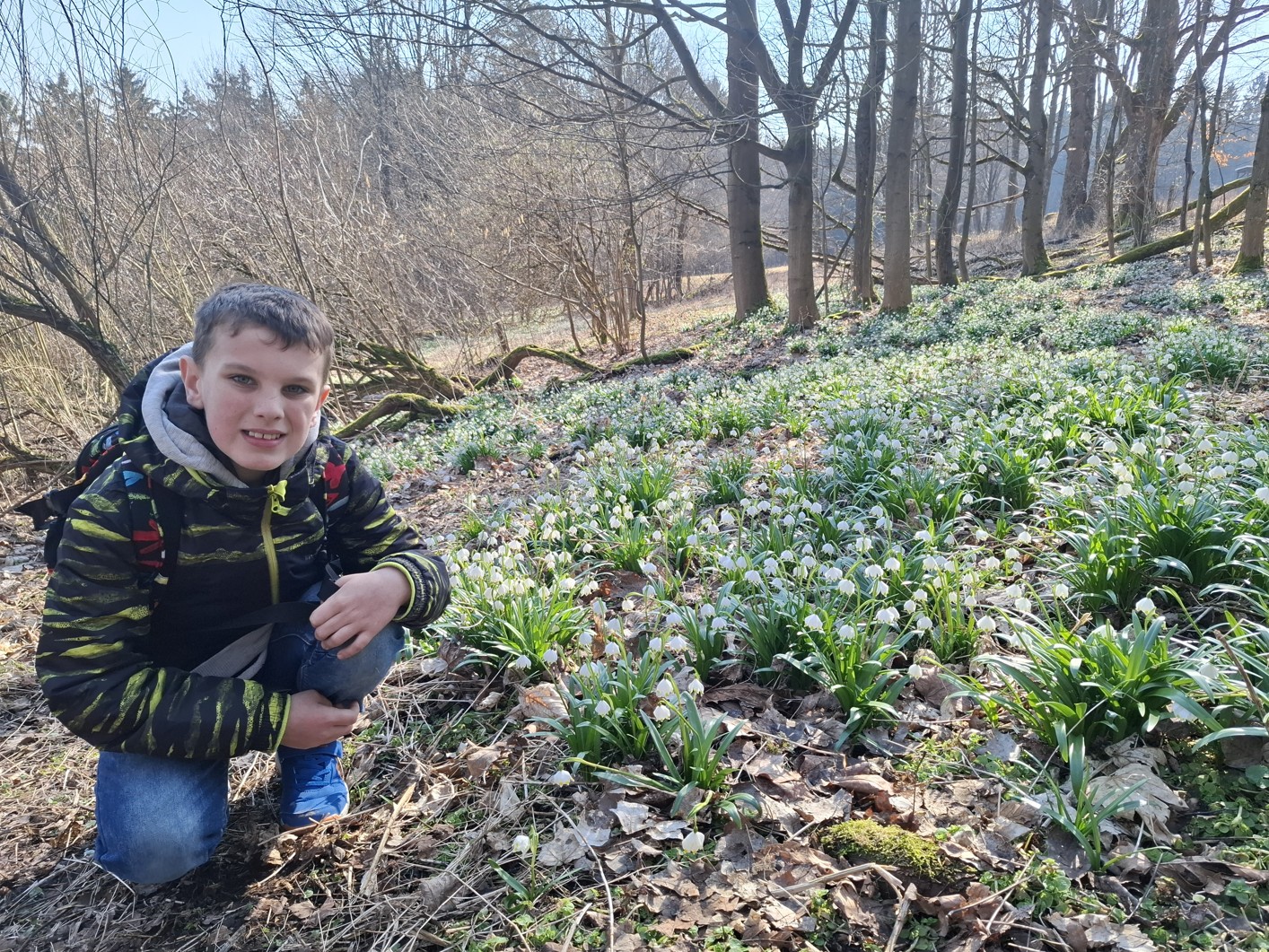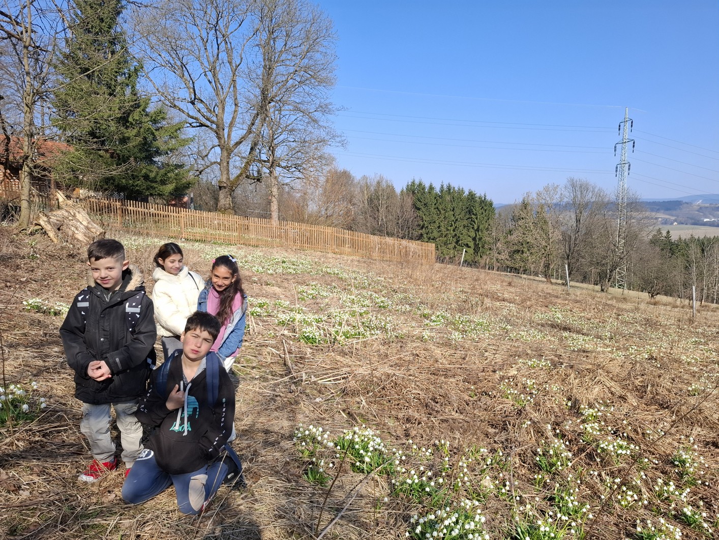 Ve středu 18. 3. jsme si s 2. a 4. třídou v rámci prvouky užili projektový den s názvem ,,Jaro venku,, a vyrazili na poznávací výlet do přírody. Autobusem jsme dojeli na Kopaninu, odkud jsme pokračovali k rozhledně Kopanina a dále na bledulovou louku nad Rychnovem. Během cesty jsme pozorovali jarní proměny přírody – poznávali jsme jarní rostliny, květiny i byliny, například medvědí česnek, sledovali jsme změny na stromech a pozorovali různé druhy ptáků. Viděli jsme také, jak datli hloubí díry do stromů, kde hledají potravu. Na blízké farmě jsme viděli domácí zvířata, jako jsou ovce, koně, slepice, husy a prasata. Výlet jsme zakončili v Rychnově a zpět jsme se vrátili autobusem. Celý den jsme si užili a odnesli si spoustu nových poznatků i zážitků.