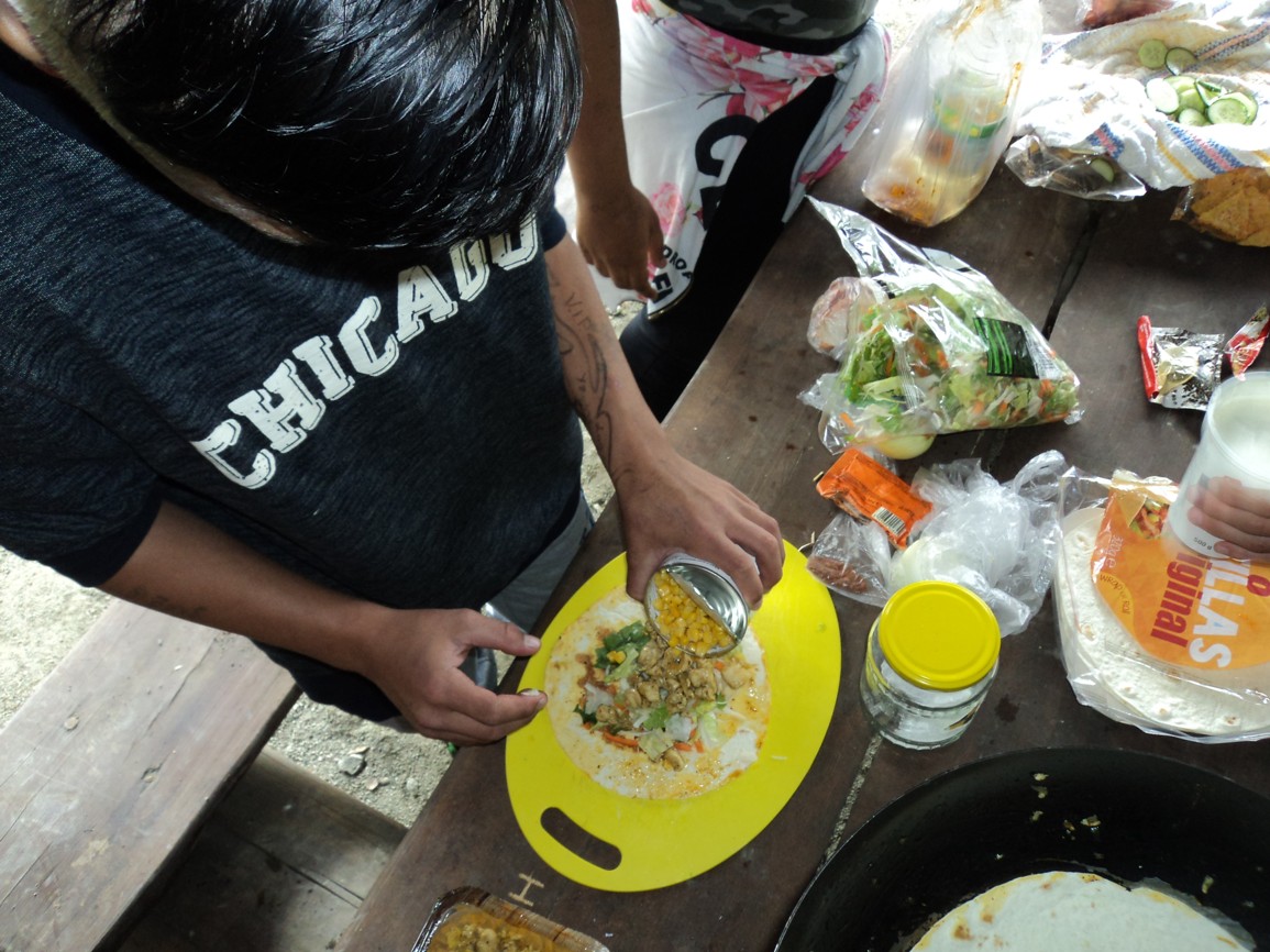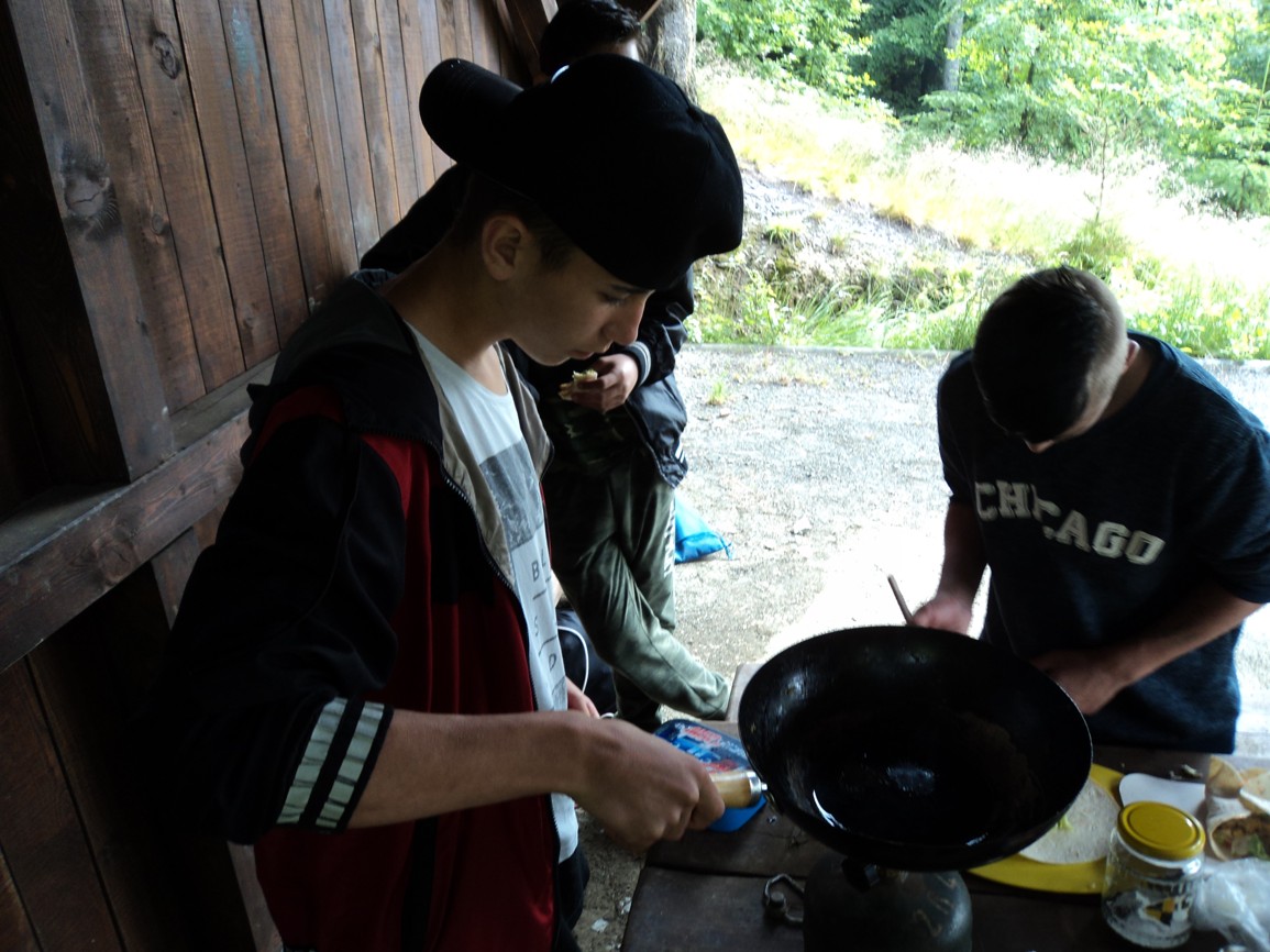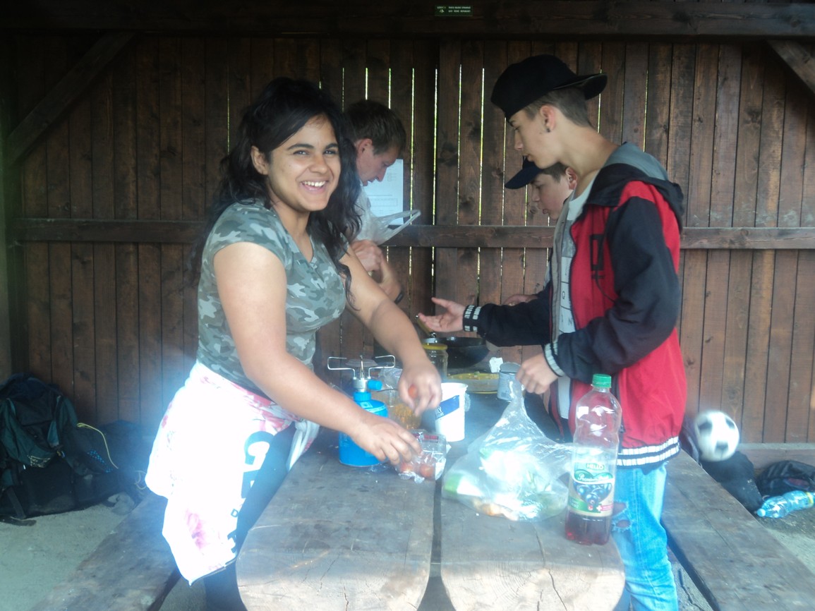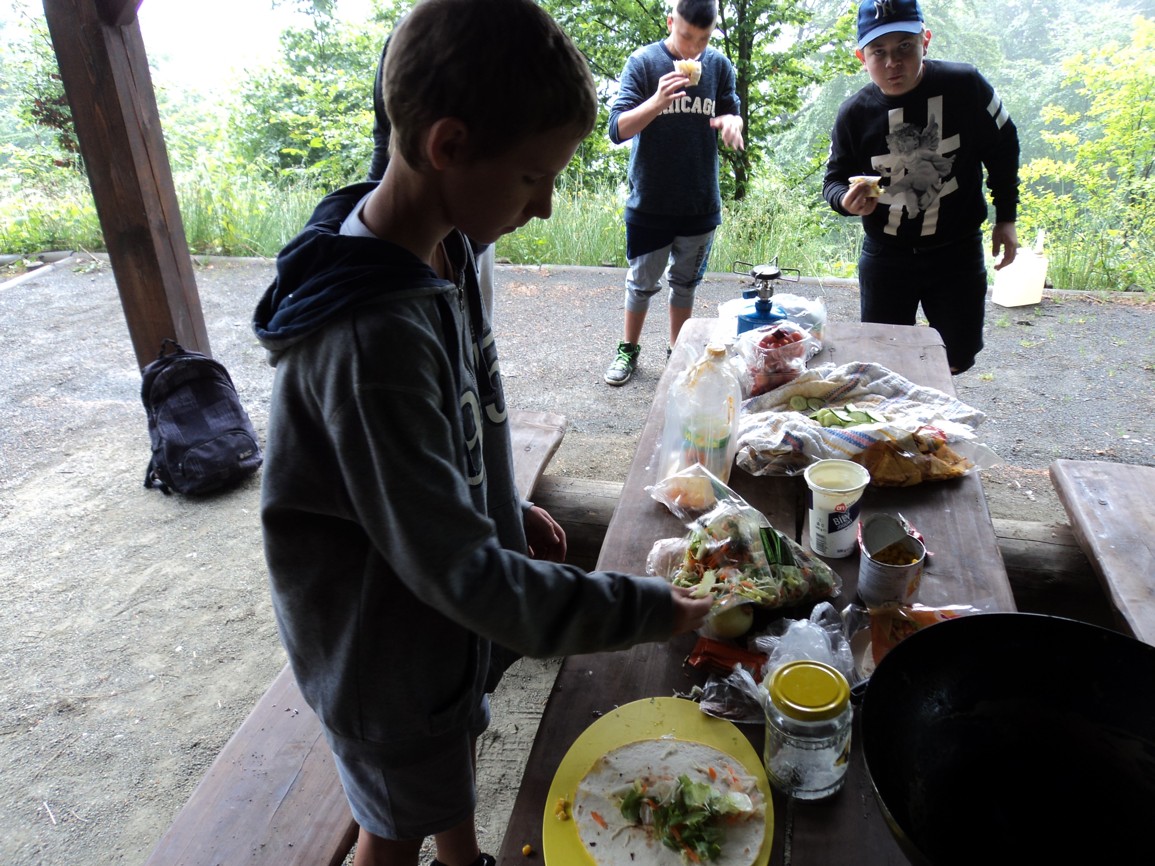 Klasická výuka matematiky vystřídána výukou přírodopisu byla pak doplněna o toužebně očekávané chvíle ze strany žáků i učitele. Byla jí příprava společného vlastního pokrmu. K obědu se ten den servírovala tortilla. Bezvadná týmová práce, jíž smyslem bylo zejména utužování kolektivní vztahů, tolerance a odpovědnosti za společné dílo. Díky vytrvalosti a nadšení jsme se dočkali jak nádherného počasí, tak velmi chutné tortilly. Ta nám pak dodala energii na pěší výlet do čtyř kilometrů vzdálené autobusové zastávky, odkud nás dovezl autobus zpět do Jablonce. Těšíme se na další parádní akci.