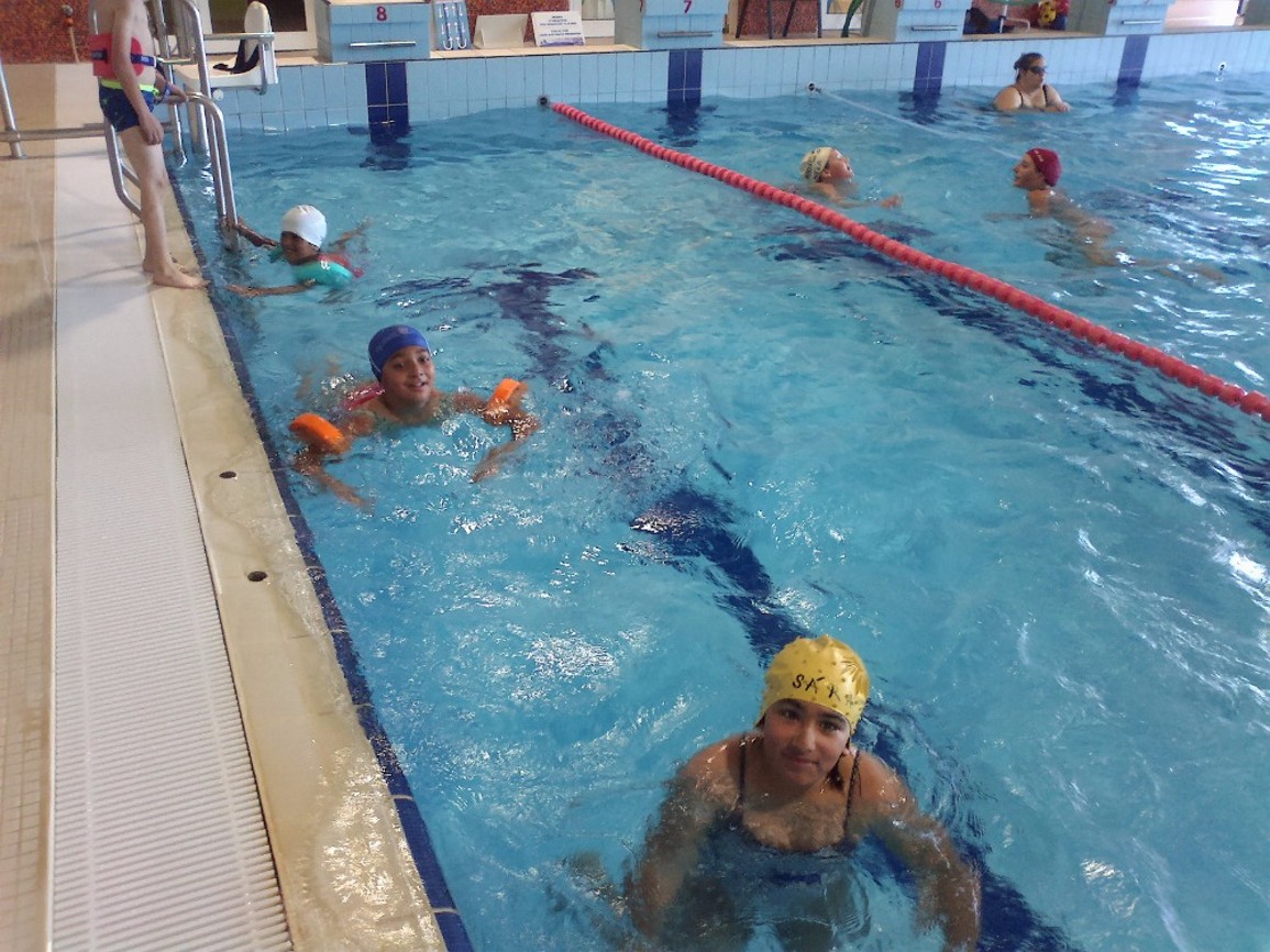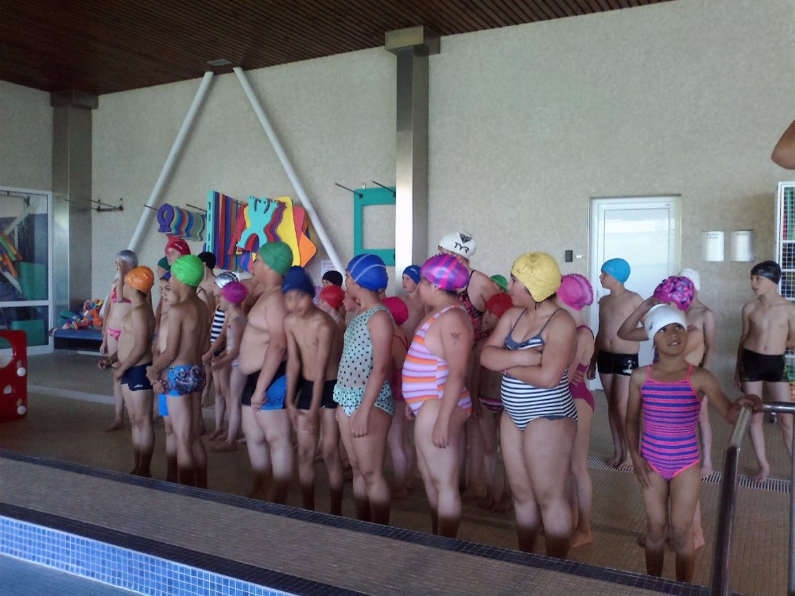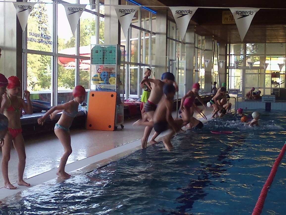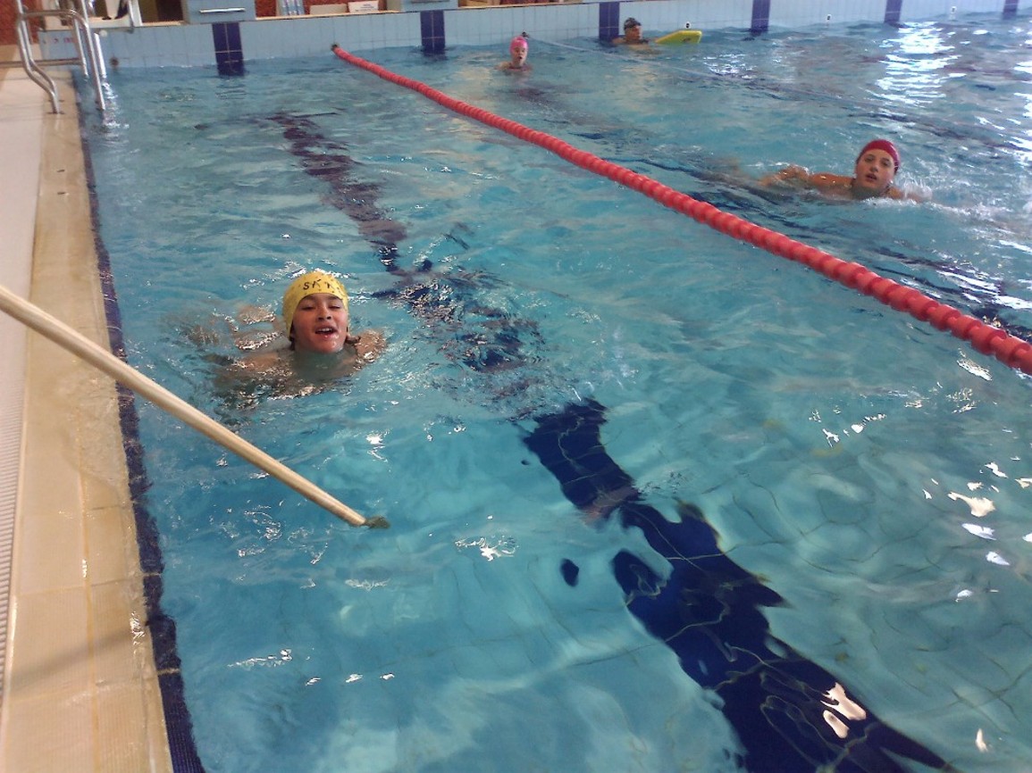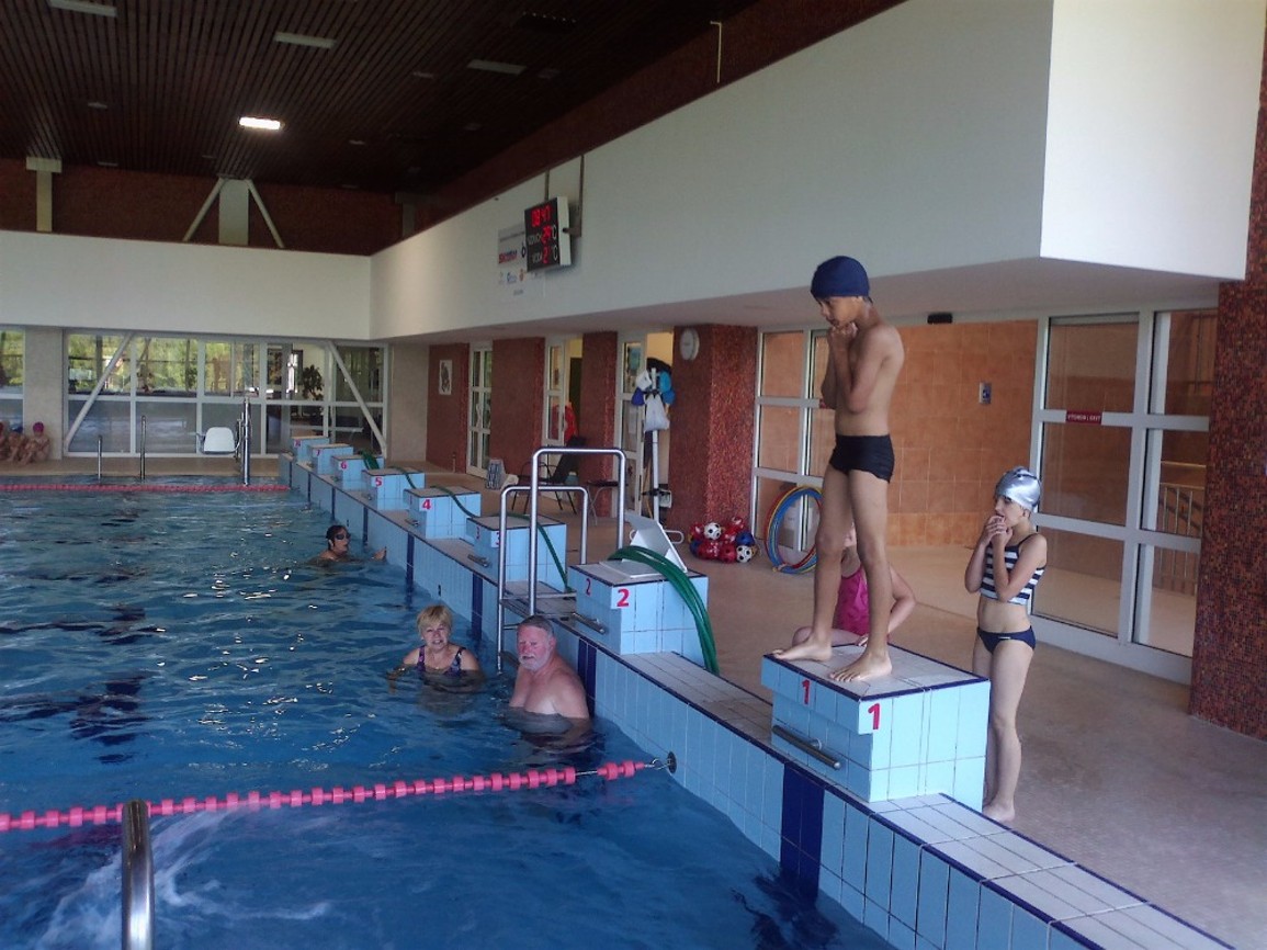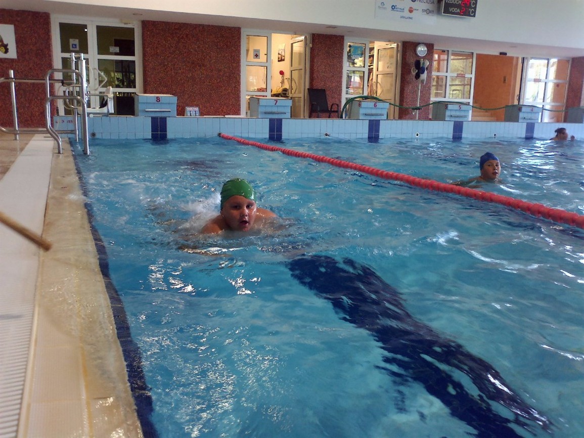 V letošním roce se naše škola účastnila plaveckého výcviku v "plavecké škole v Jabloneckém bazénu". Jednalo se o děti ze druhé, třetí a čtvrté třídy, které prošly plaveckým výcvikem. Byli jsme celkem 5krát. Na dětech byly vidět postupné plavecké pokroky. Při posledním pátém setkání, děti předvedly všechny dovednosti, které zvládly a dostaly za to MOKRÉ VYSVĚDČENÍ. Také paní učitelky z Plavecké školy dostali od dětí naší školy drobný dáreček -  keramickou kočku, vytvořenou v naší škole. Některé z dětí se už velice těší  na příští plavání.