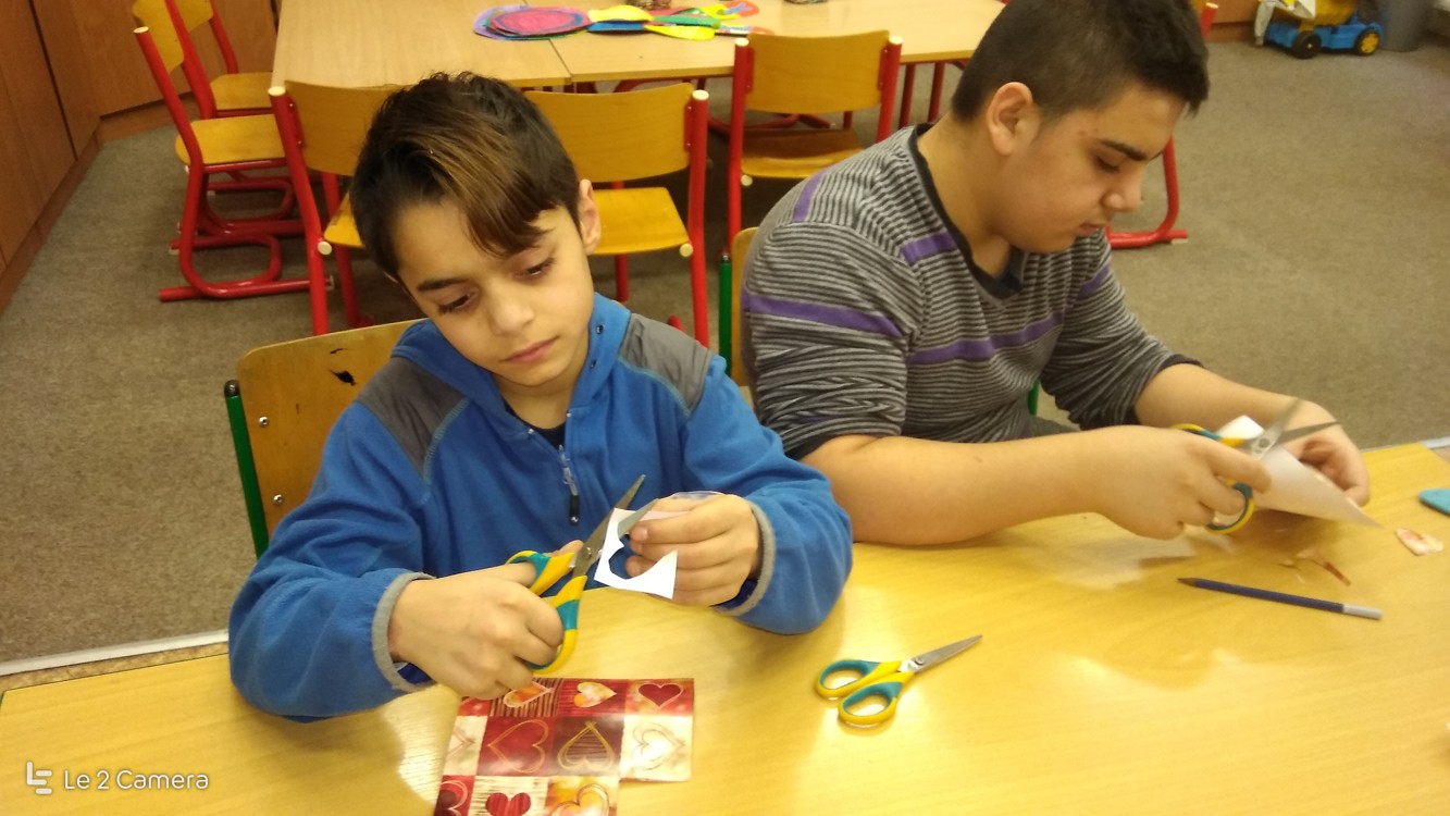 Během svátku svatého Valentýna jsme si při pracovním vyučování vytvořili valentýnské přáníčko pro naše maminky.