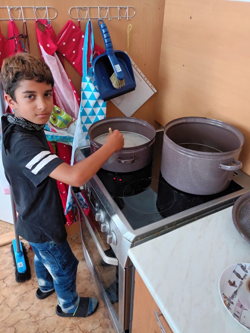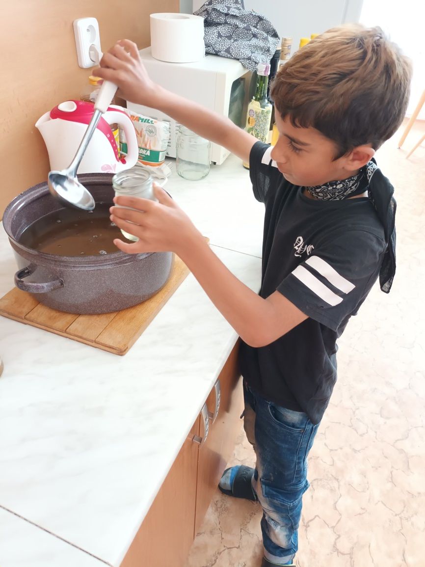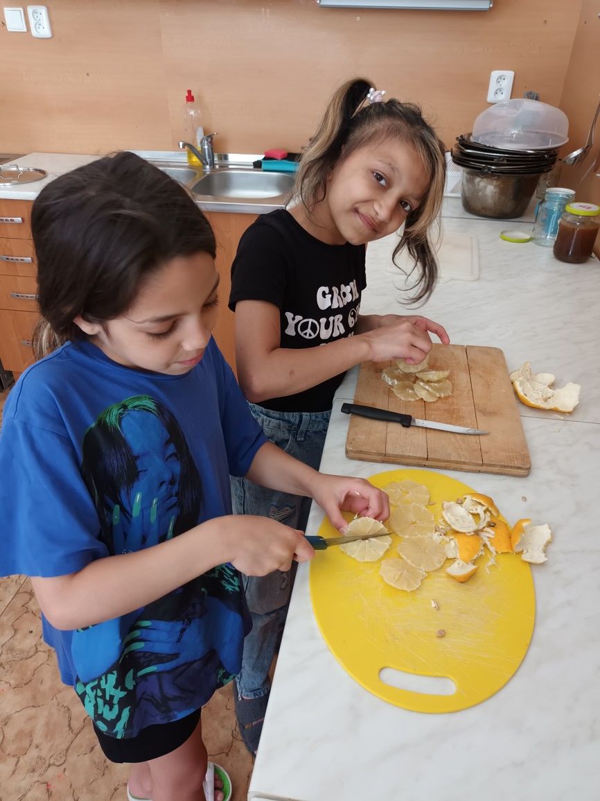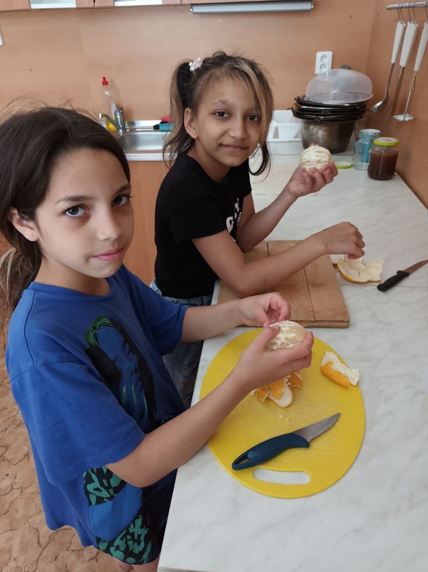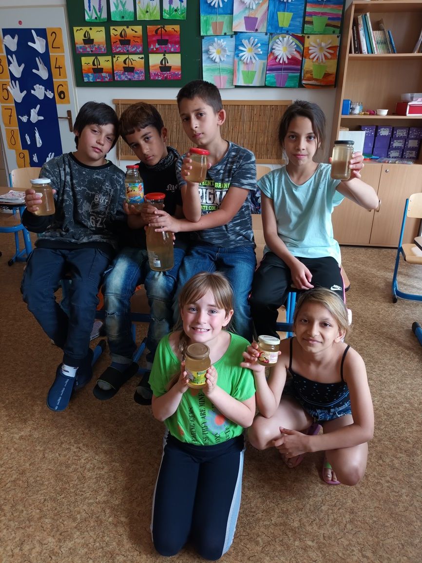 Ve středu 8.6. jsme se rozhodli vyrazit na sběr bezových květů a uvařit si z nich bezovou šťávu. Květy jsme natrhali, ve škole nastříhali do hrnce a přidali citrony a kyselinu citronovou. Další den, ve čtvrtek 9.6., jsme vše přecedili, vymačkali přes plátýnko do hrnce, přidali cukr a lehce povařili. Hotovou šťávu jsme nalili do skleniček, které si děti odnesly domů.