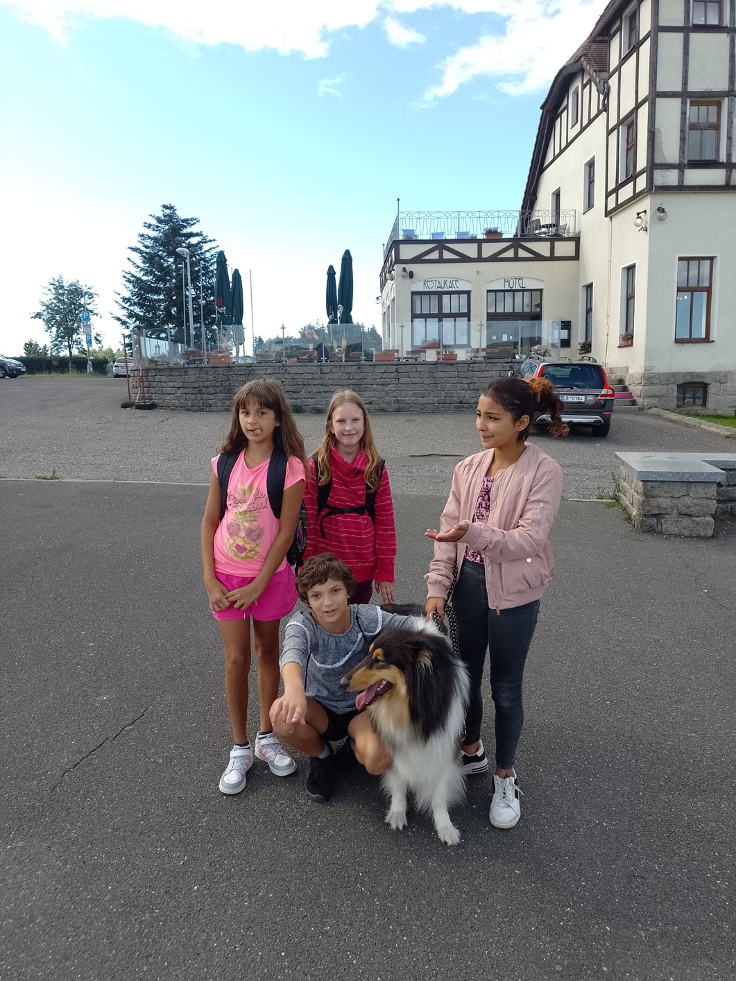 Druhý školní den jsme vyrazili do přírody. Dlouho jsme se neviděli a tak bylo co vyprávět. Naše první kroky vedli k pivovarským rybníkům, kde jsme posvačili. Další zastávka byla na Petříně odkud je nádherný výhled na Jablonec. Naší procházku jsme zakončili u studánky. Celou naší pouť nás doprovázela naše psí kamarádka Alma.