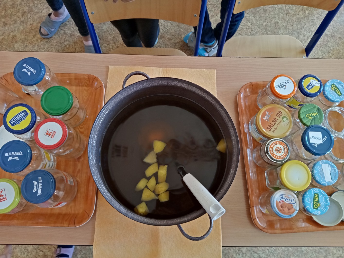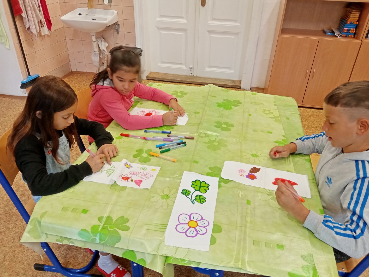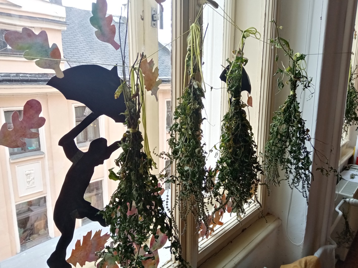Mátu a meduňku jsme se rozhodli usušit. Tyto usušené nadrcené bylinky jsme dali do látkových pytlíčků, které jsme si sami nazdobili a ušili. Část máty jsme povařili s vodou a citronem, abychom o den později uvařili mátový sirup, který nám velice chutnal.