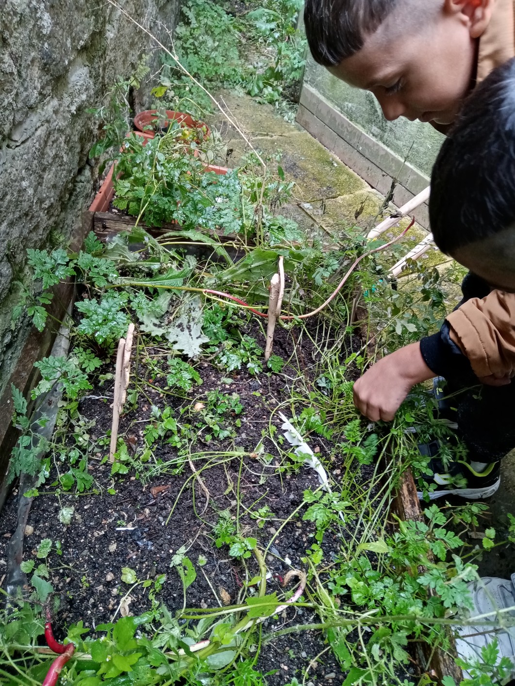 Z ředkvičky jsme využili pouze lusky, které jsme nasušili a jejich semínka použijeme k vysetí na jaře 2023. Ze záhonku jsme sklidili malé mrkvičky, které jsme alespoň ochutnali, byli sladké.