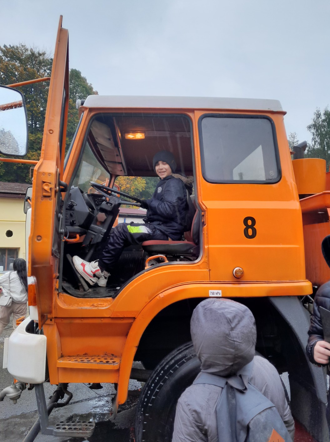 I přes nepříznivé počasí si žáci druhého stupně naší školy prohlídku areálu Technických služeb náramně užili. Byla tam pro nás připravená soutěž ve formě otázek a odpovědí, ale také mini hrátky pro školáky. Dále jsme navštěvovali jednotlivá pracoviště jako například svářečskou dílnu, autodílnu nebo řídící centrum. Naši žáci měli též možnost zasednout za volanty techniky, se kterou pracovníci technických služeb obstarávají chod městských ulic a přilehlého okolí. Akce se nám hodně líbila a těšíme se na to, až se vyučíme a budeme například automechanici v dílnách technických služeb.