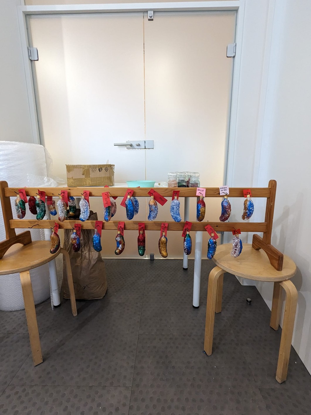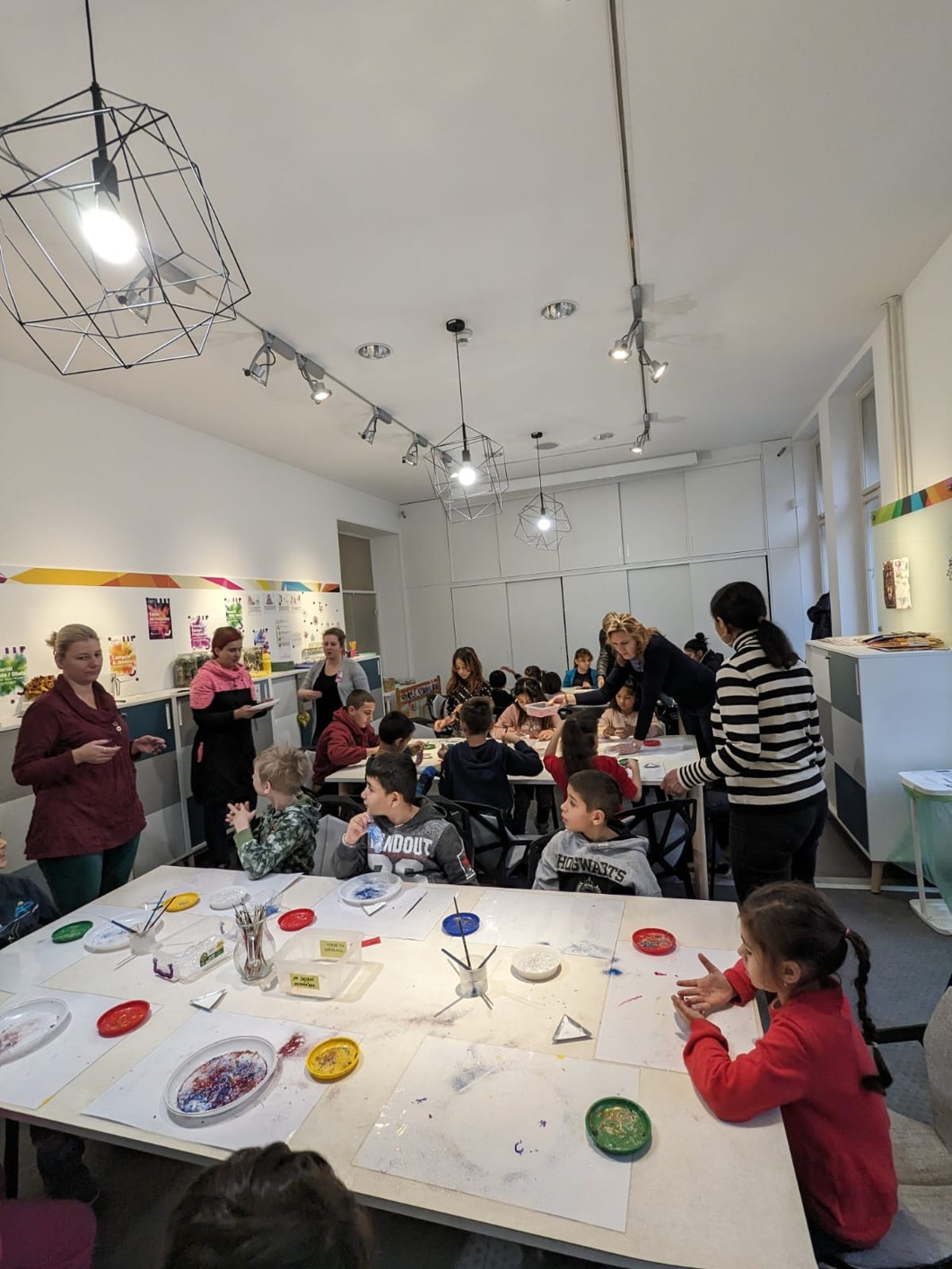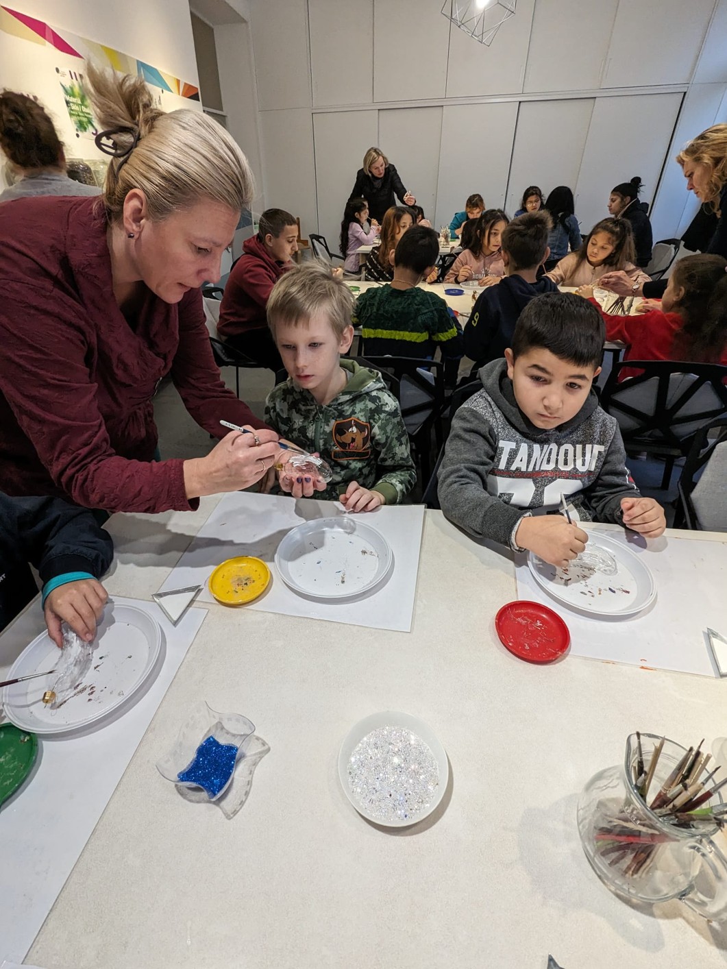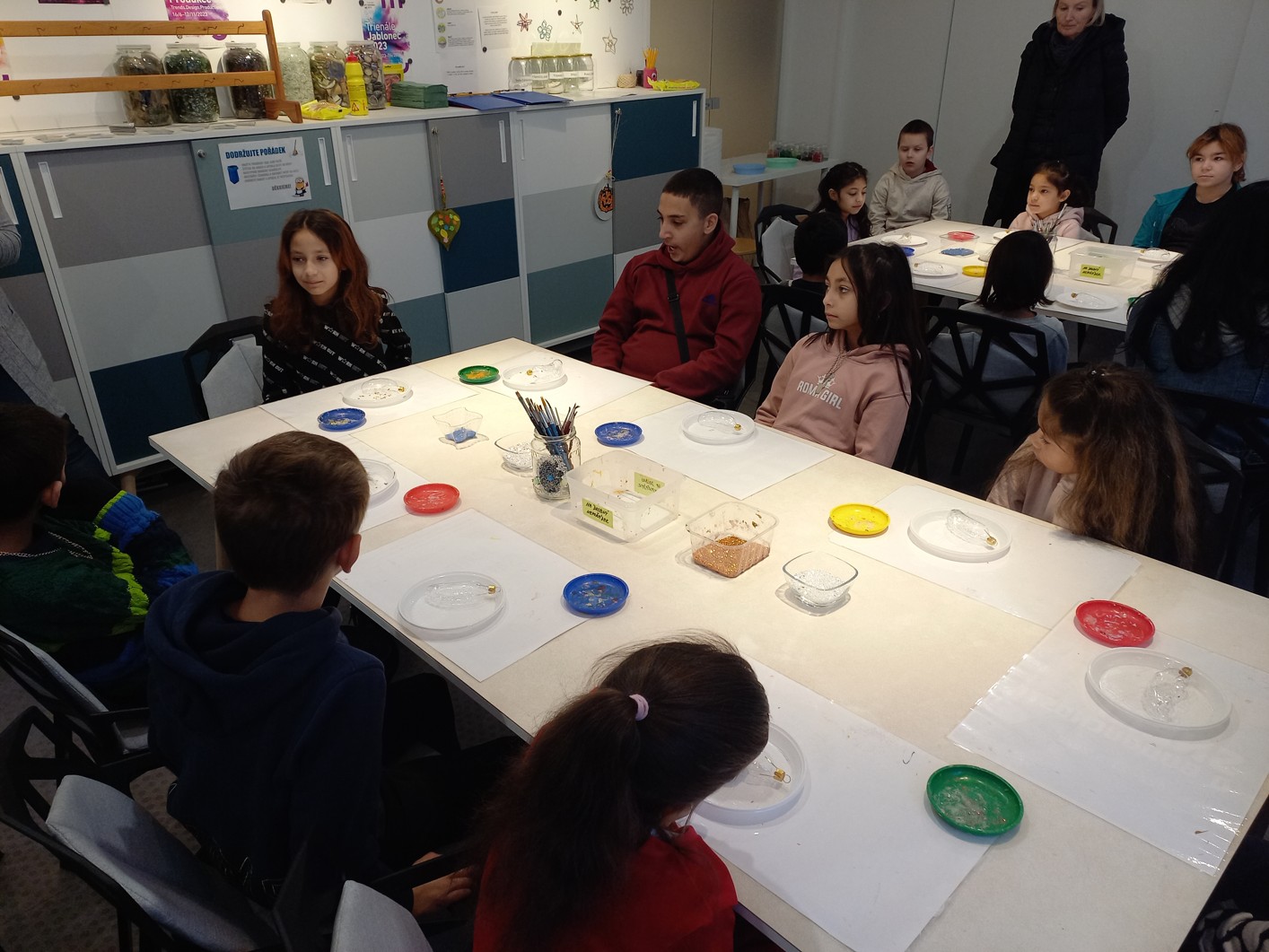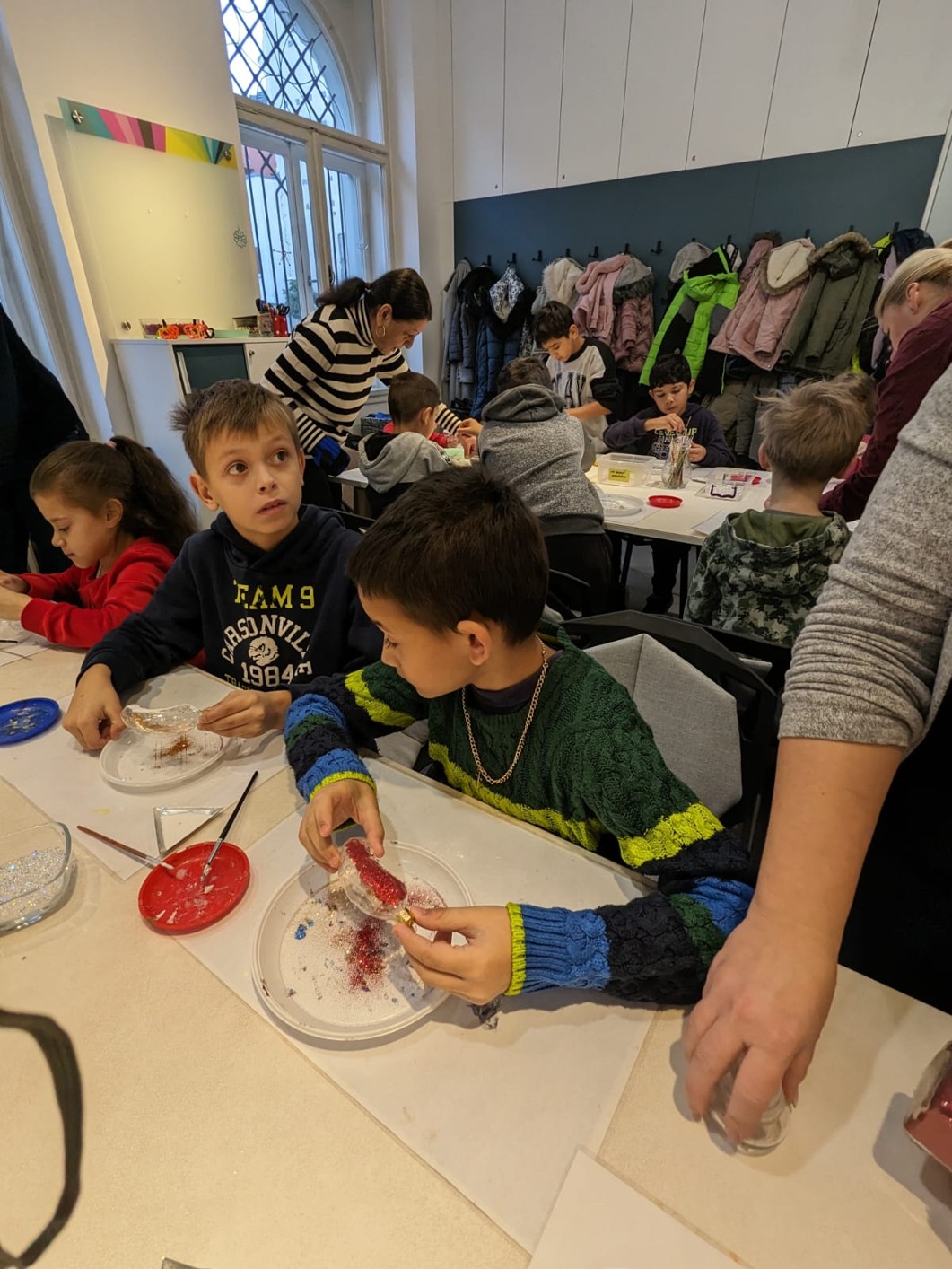 Zdobilo se balotinou a polepovalo broušenými skleněnými kameny. Vánoční ozdoby našich dětí hrály všemi možnými barvami a dětem se moc povedly. Na tvoření navázala prohlídka expozice vánočních ozdob se zábavnými úkoly pod vedením lektorky.
