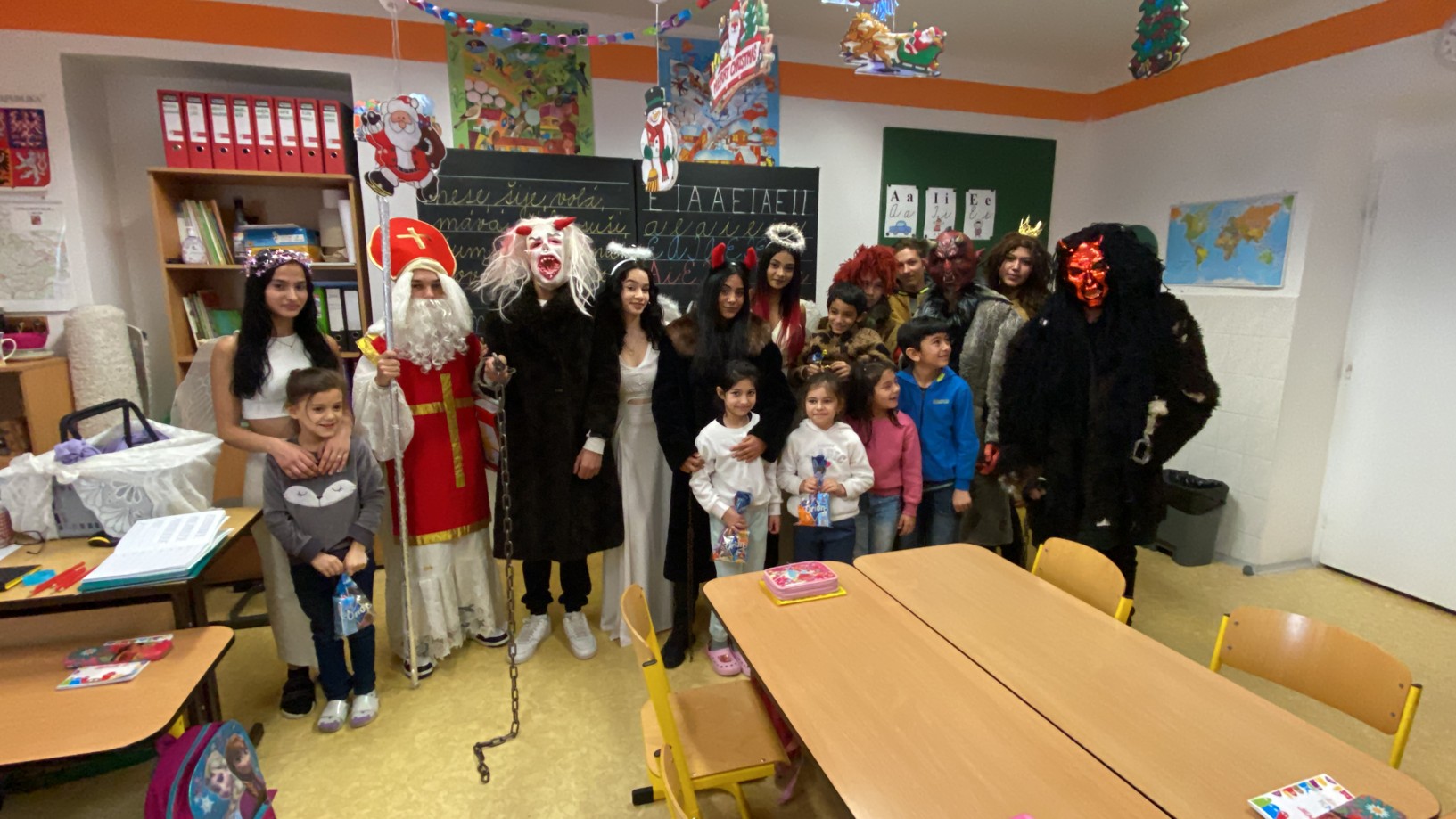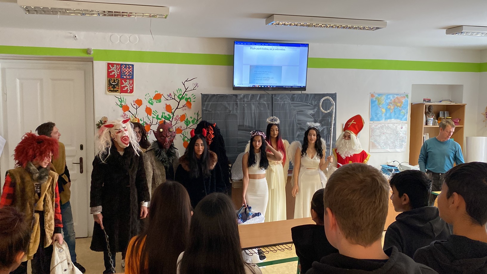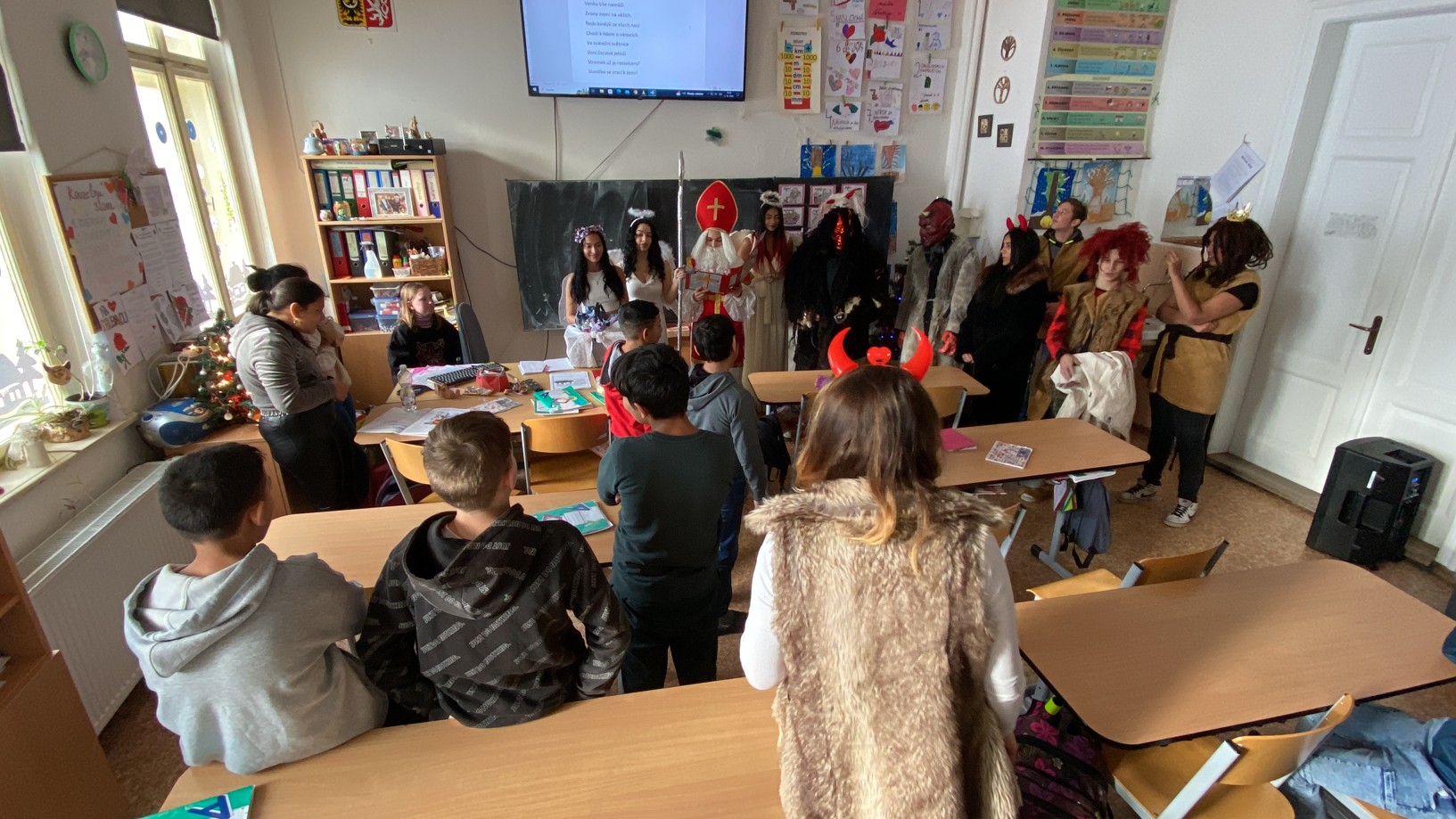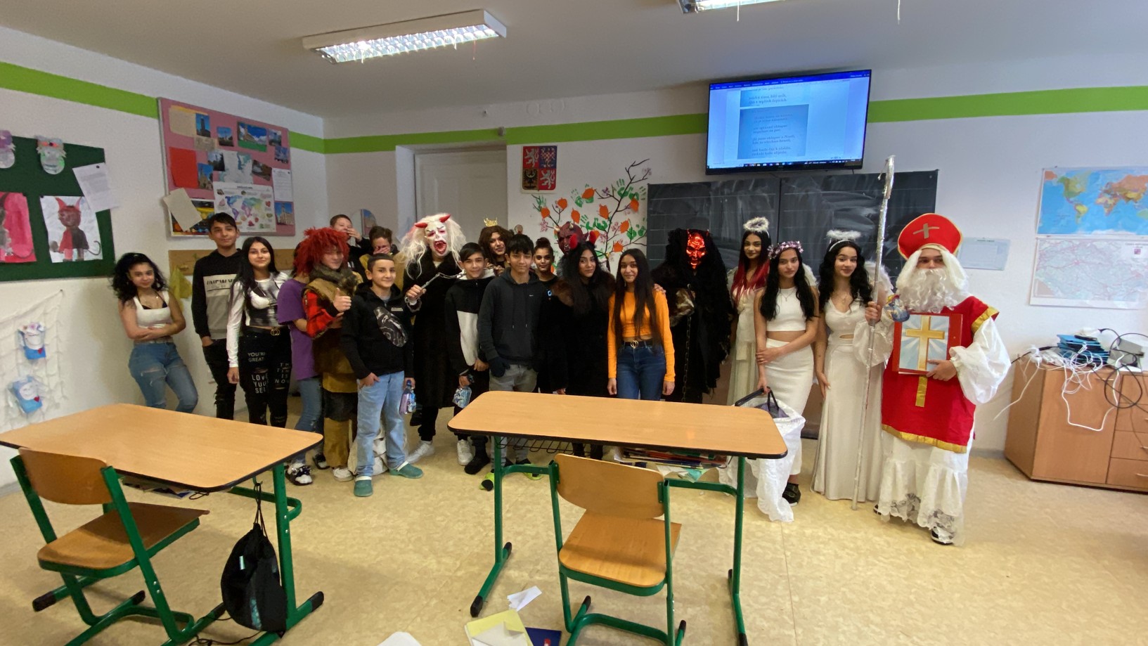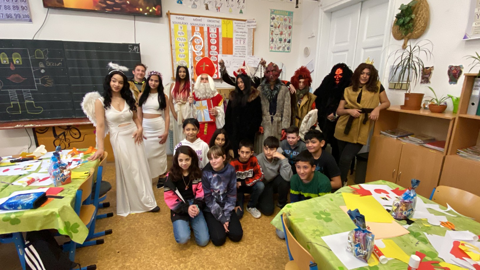 Stejně jako minulé roky obstarali akci Mikuláš na naší škole žáci deváté třídy. Postupně obešli všechny třídy, aby si poslechli připravené básničky, a potom za odměnu obdarovali své spolužáky mikulášským balíčkem. Našim deváťákům a jejich třídnímu učiteli děkujeme za bezproblémové zajištění akce.