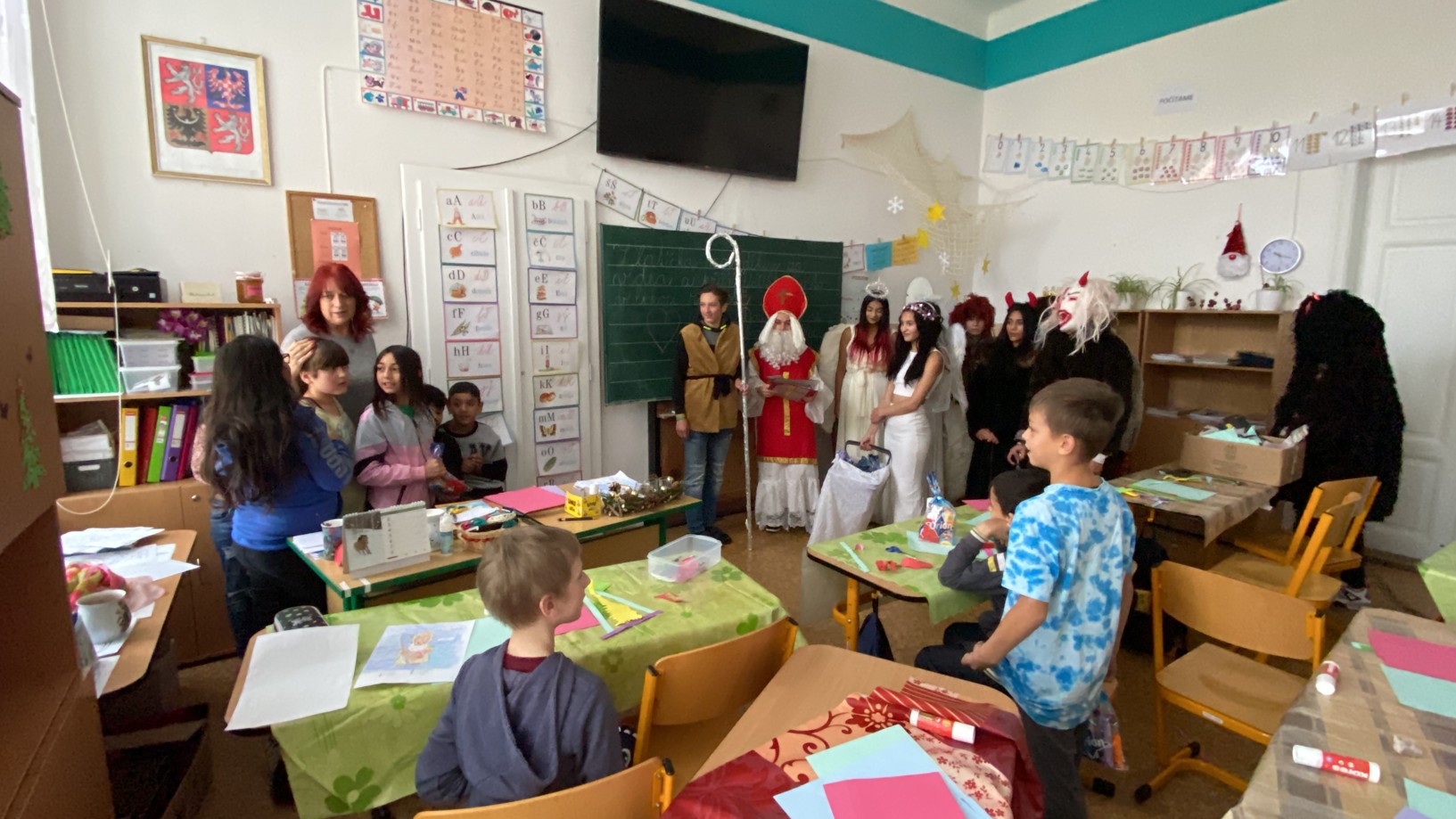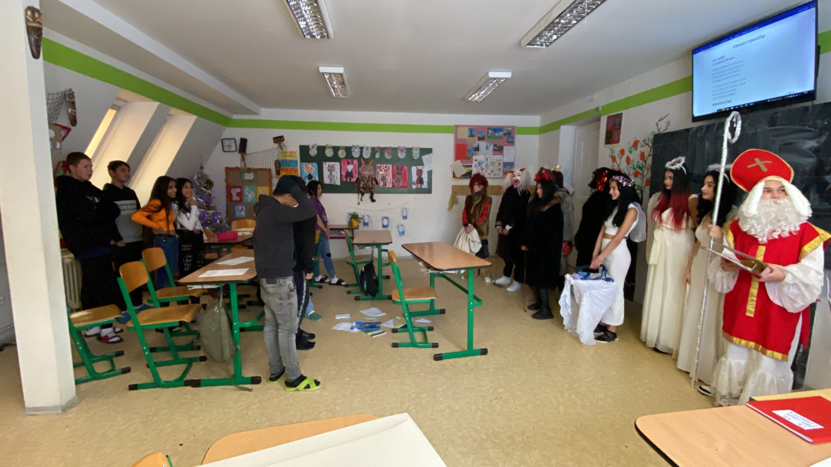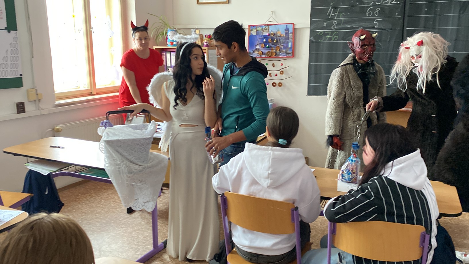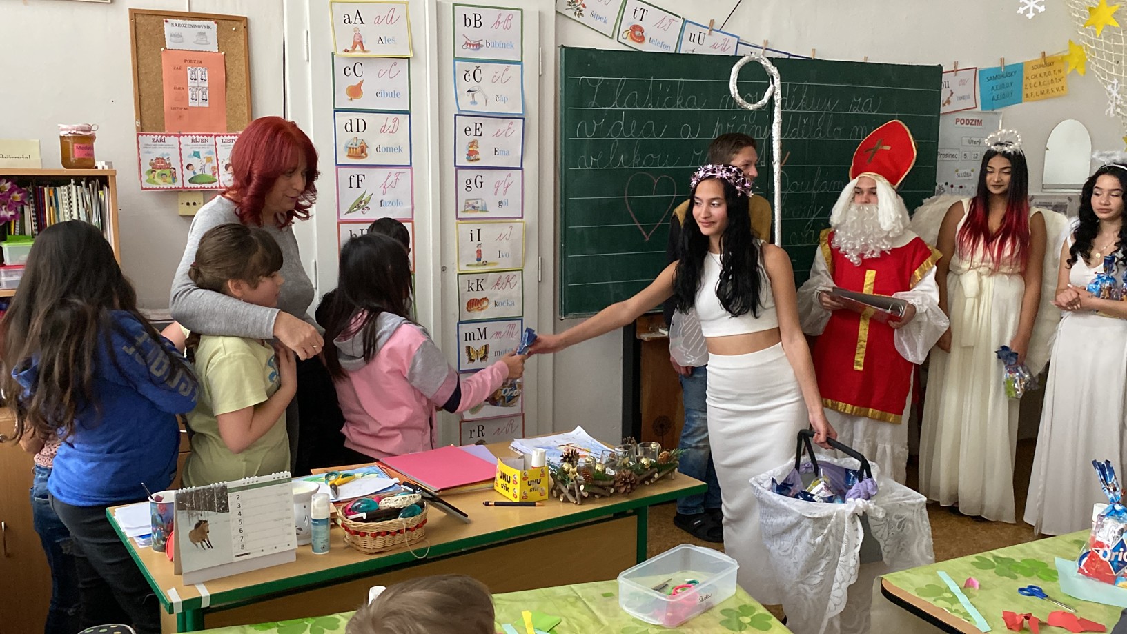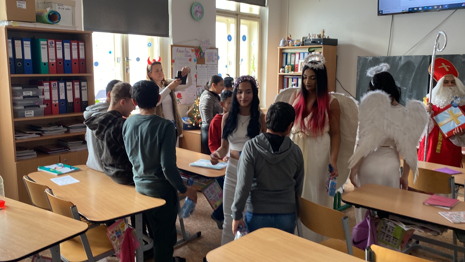 Stejně jako minulé roky obstarali akci Mikuláš na naší škole žáci deváté třídy. Postupně obešli všechny třídy, aby si poslechli připravené básničky, a potom za odměnu obdarovali své spolužáky mikulášským balíčkem. Našim deváťákům a jejich třídnímu učiteli děkujeme za bezproblémové zajištění akce.