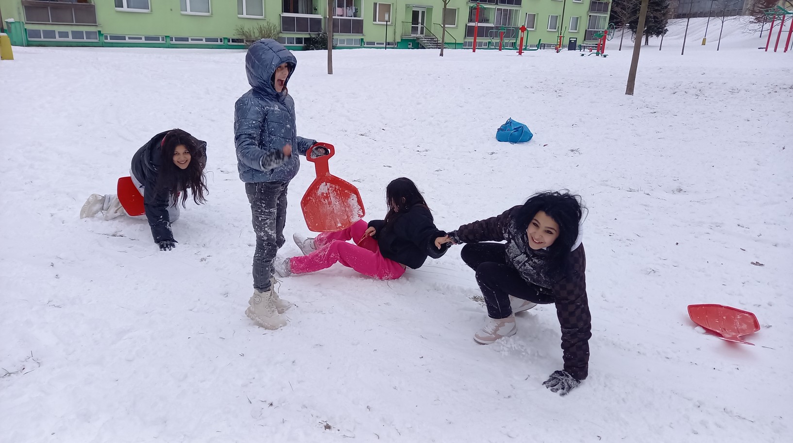 Během tohoto pololetí jsme se s dětmi, které měly zájem, začali setkávat vždy po vyučování jednou za 14 dní ve středu. Během těchto setkání jsme si hráli, sportovali, vařili a jedli. Vymýšleli jsme si a připravovali vždy jiný program, tak aby to děti bavilo a hlavně, aby měly chuť trávit smysluplně svůj volný čas. Začali jsme stopovanou v přírodě zakončenou malováním křídami. Také jsme si koupili draky a pouštěli je za větrného počasí. Pokud bylo ošklivo, sportovali jsme v tělocvičně a poté jsme si uvařili opravdovou pochoutku (smažáka s hranolkami). Když nám konečně napadl sníh a hned neroztál, sedli jsme na ježdíky a pořádně si zařádili na kopci. Třešničkou na dortu však byl výlet do Dinoparku v Liberci. V rámci intervence se snažíme dětem splnit některá jejich přání, seznámit je s činnostmi, které si samy nevyzkouší a vzít je na místa, kam se s rodinou možná nikdy nepodívají. Již teď se těšíme na další pololetí.