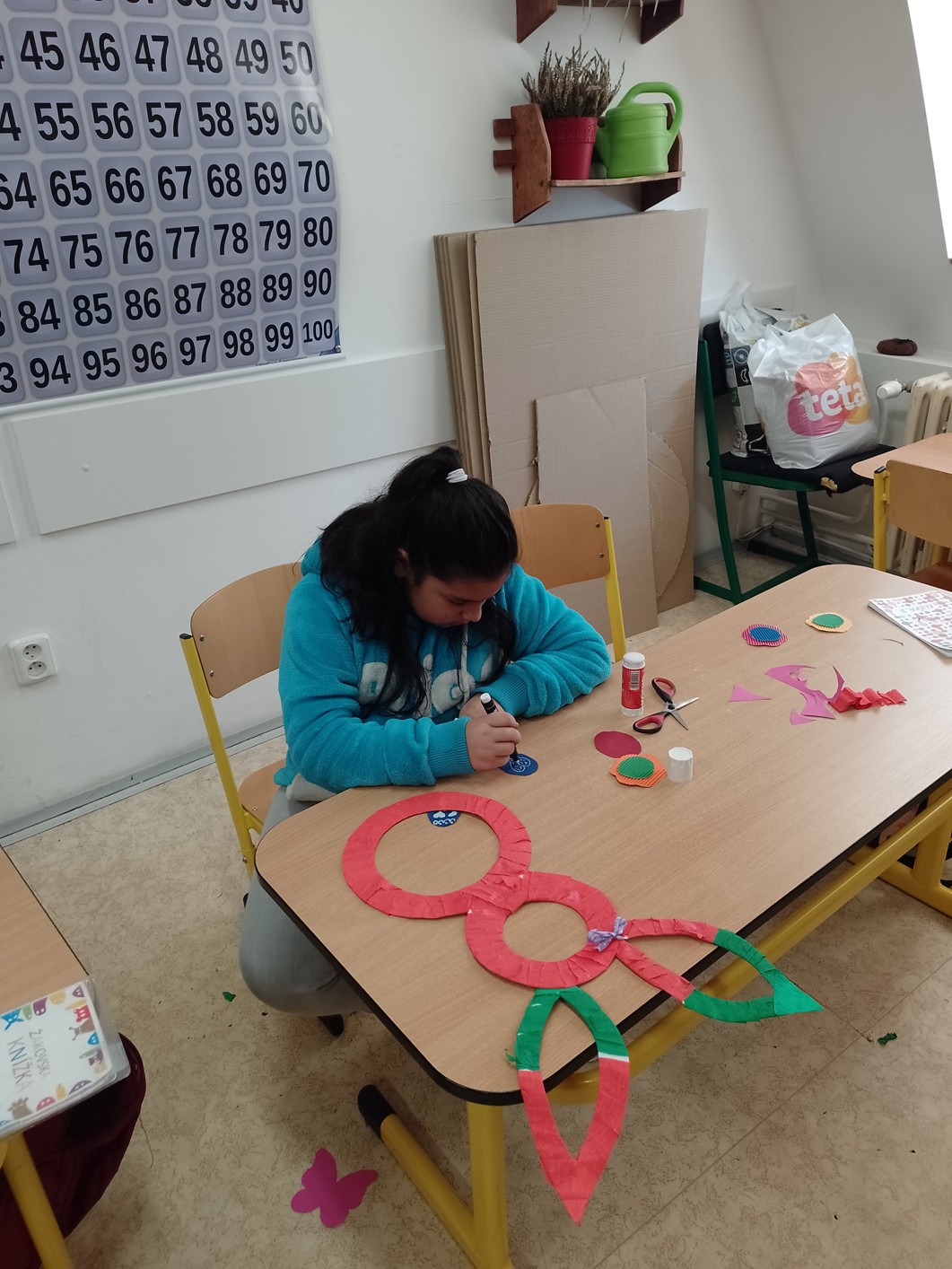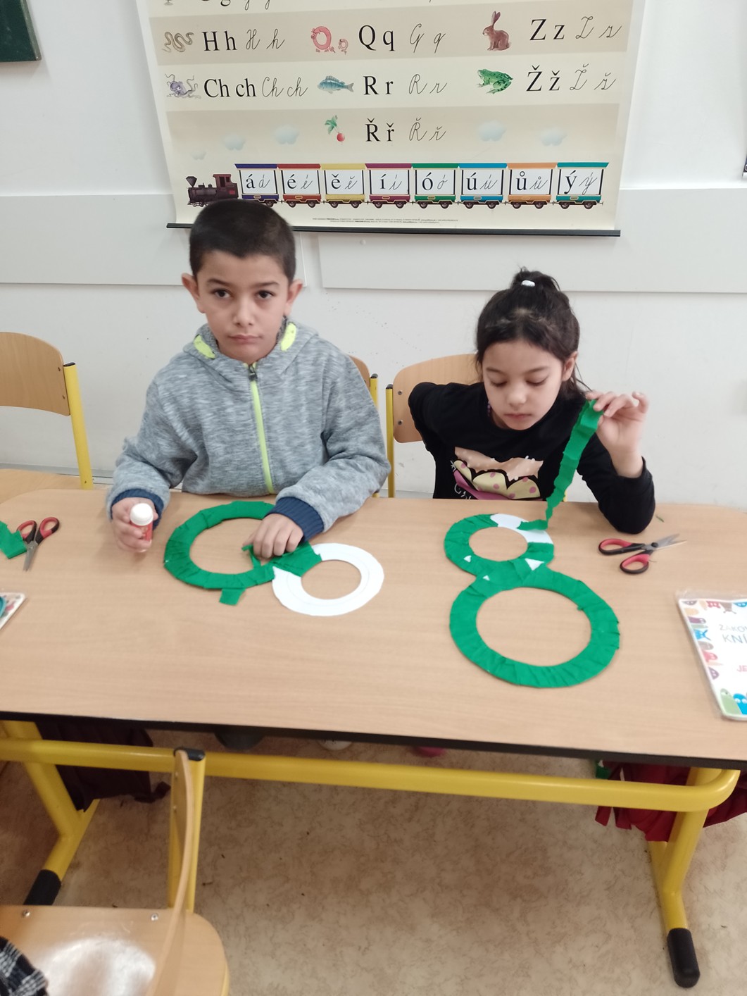 Velikonoční dílny se u nás nesly v duchu zvířecím. Vyrobili jsme si velikonočního králíčka. Dřina to byla veliká. Samé obkreslování, stříhání a lepení. Výsledek byl nádherný.