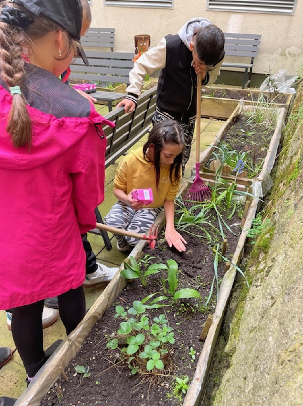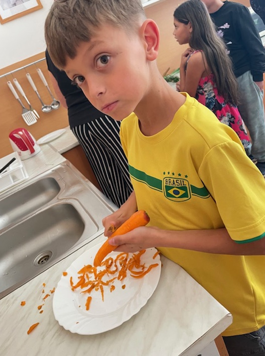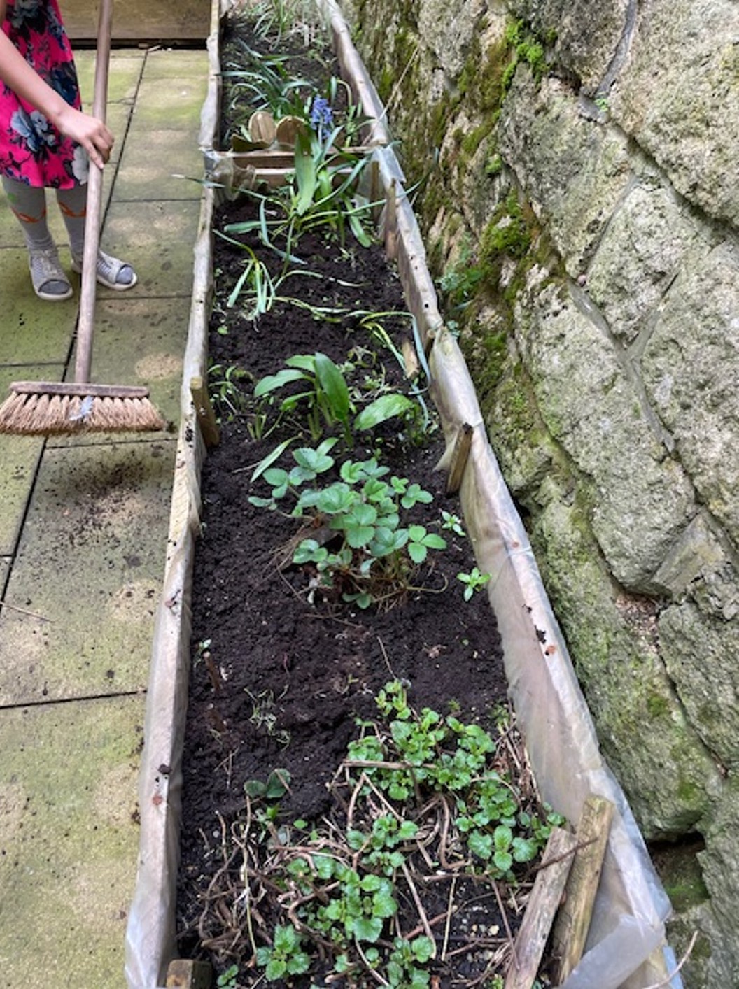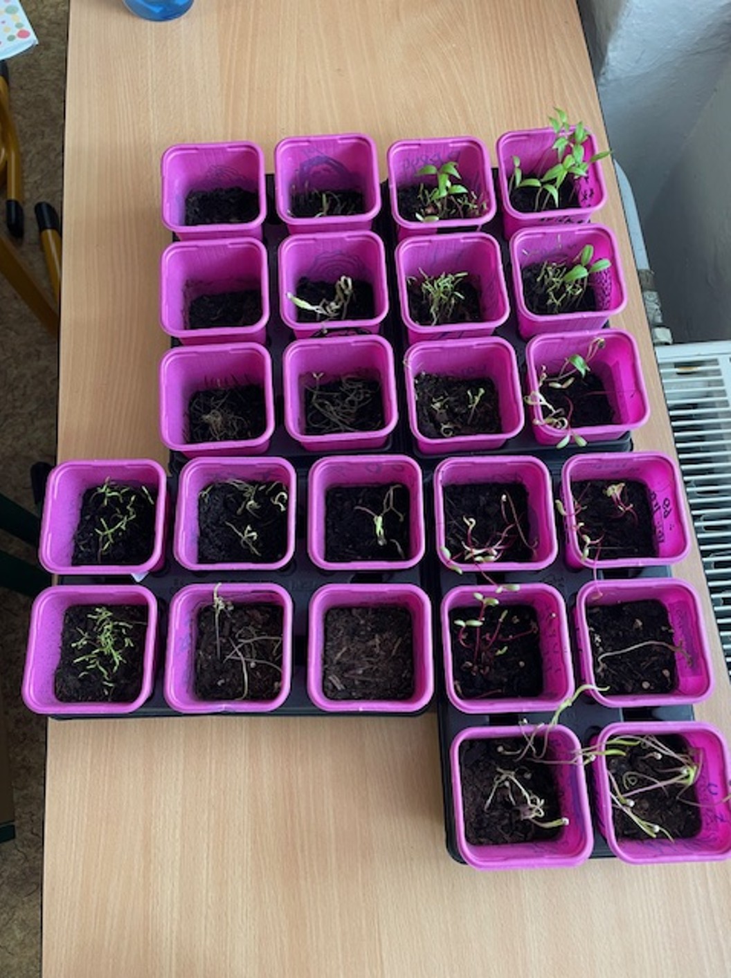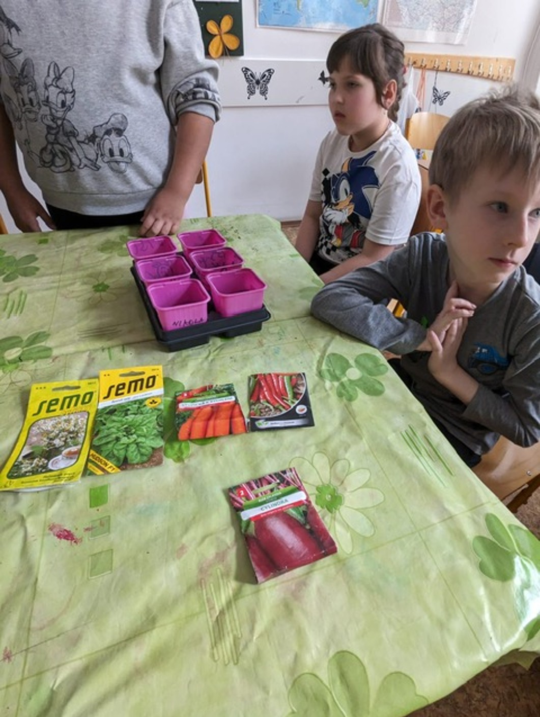 V letošním školním roce jsme si ve třídě zaseli: heřmánek, špenát, mrkev, chilli papričky a salátovou řepu. Pozorovali jsme, jak jednotlivá semínka klíčí. Nejvíce se dařilo špenátu. Když přisel vhodný čas přesunout vyklíčená semínka do záhonku, přemístili jsme je. Z minulého sázení tam na nás už čekala meduňka, pažitka, jahody a medvědí česnek. Ten jsme rovnou ze záhonku ochutnali a chutnal nám tak, že jsme ho celý snědli. Po návratu z letních prázdnin jsme byli obhlídnout a zkontrolovat náš záhonek. Nejvíce se dařilo meduňce, kterou si nasušíme a ze zbytku si uvaříme jako každoročně výborný čaj. Letos jsme se rozhodli, že přidáme i kopřivy, které se nám na záhonku také rozrostly. K našemu velkému překvapení jsme na záhonku našli i mrkev a kopr. Natrháme si pažitku, kopr a uděláme nějakou dobrou pomazánku na jednohubky, k dozdobení jsme použili slaďoučkou mrkvičku. Ostatním plodinám se ne úplně dařilo, ale aspoň jsme si uvědomili, že když chceme něco pěstovat je důležité se o záhonek pravidelně starat. A to si dáváme jako předsevzetí na příští školní akci Malý zahradník.