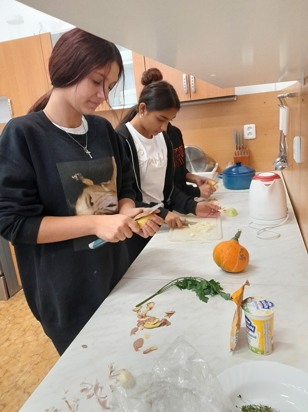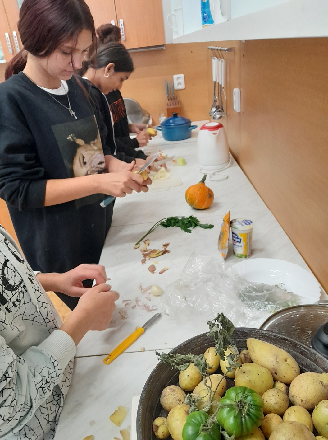 Žáci 8. třídy začali letošní školní rok sklizní úrody skromných záhonů. Závěrečným počinem pěstebních činností, které byly zahájeny v jarních měsících, byla společná práce ve školní kuchyni, kde jsme zpracovali sklizené dýně, ze kterých jsme uvařili výborný pokrm ve formě dýňové polévky na asijský způsob. Z vlastní činnosti a závěrečného pokrmu jsme měli všichni radost a přejeme si, aby nám příroda v příštím roce nadělila minimálně stejnou úrodu jako v letošním roce.