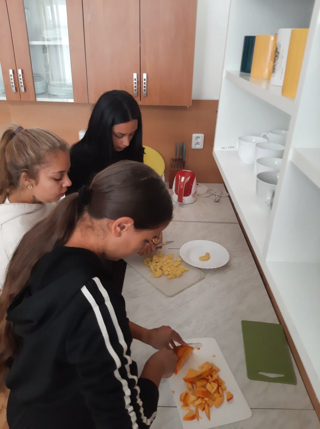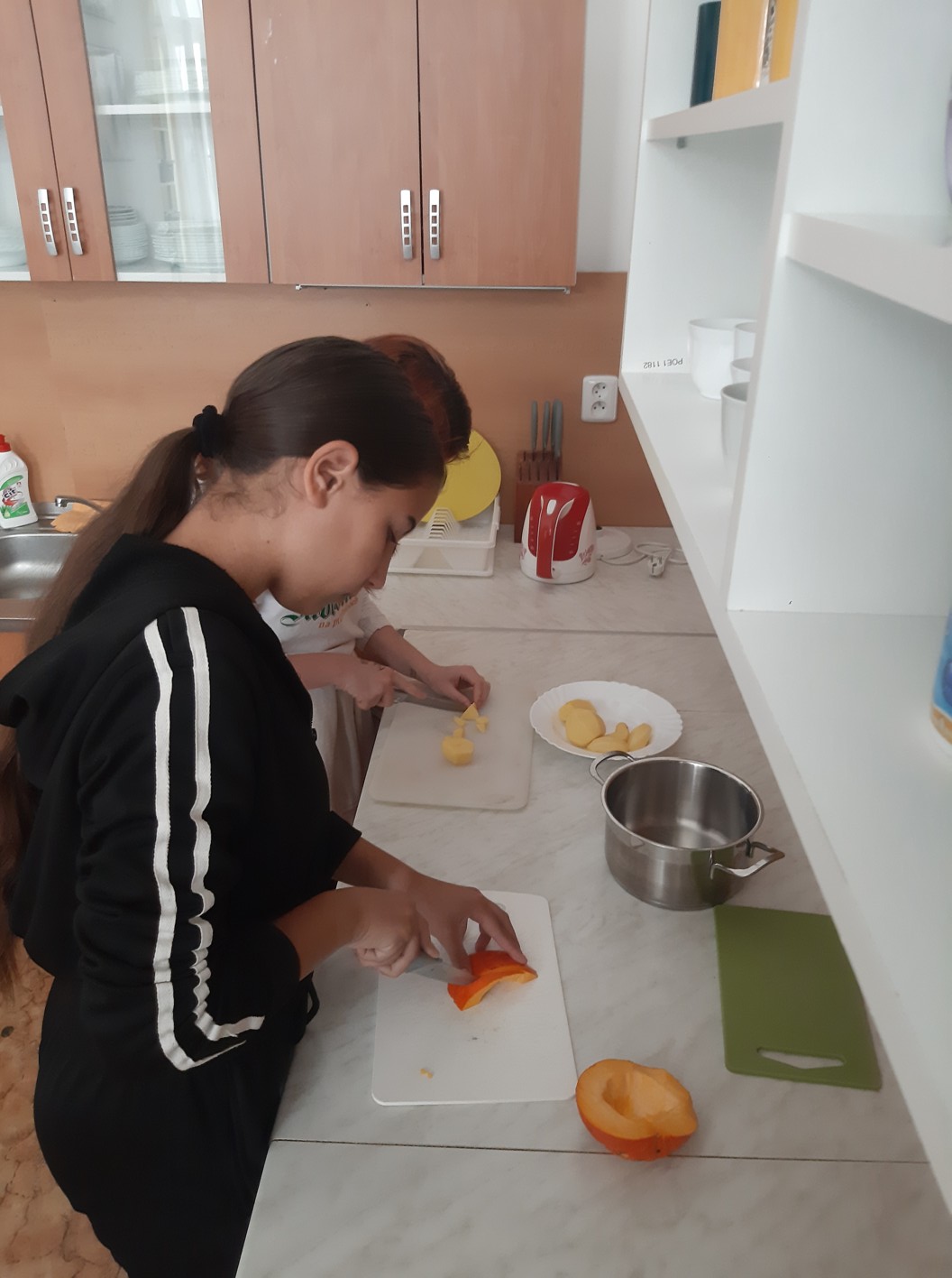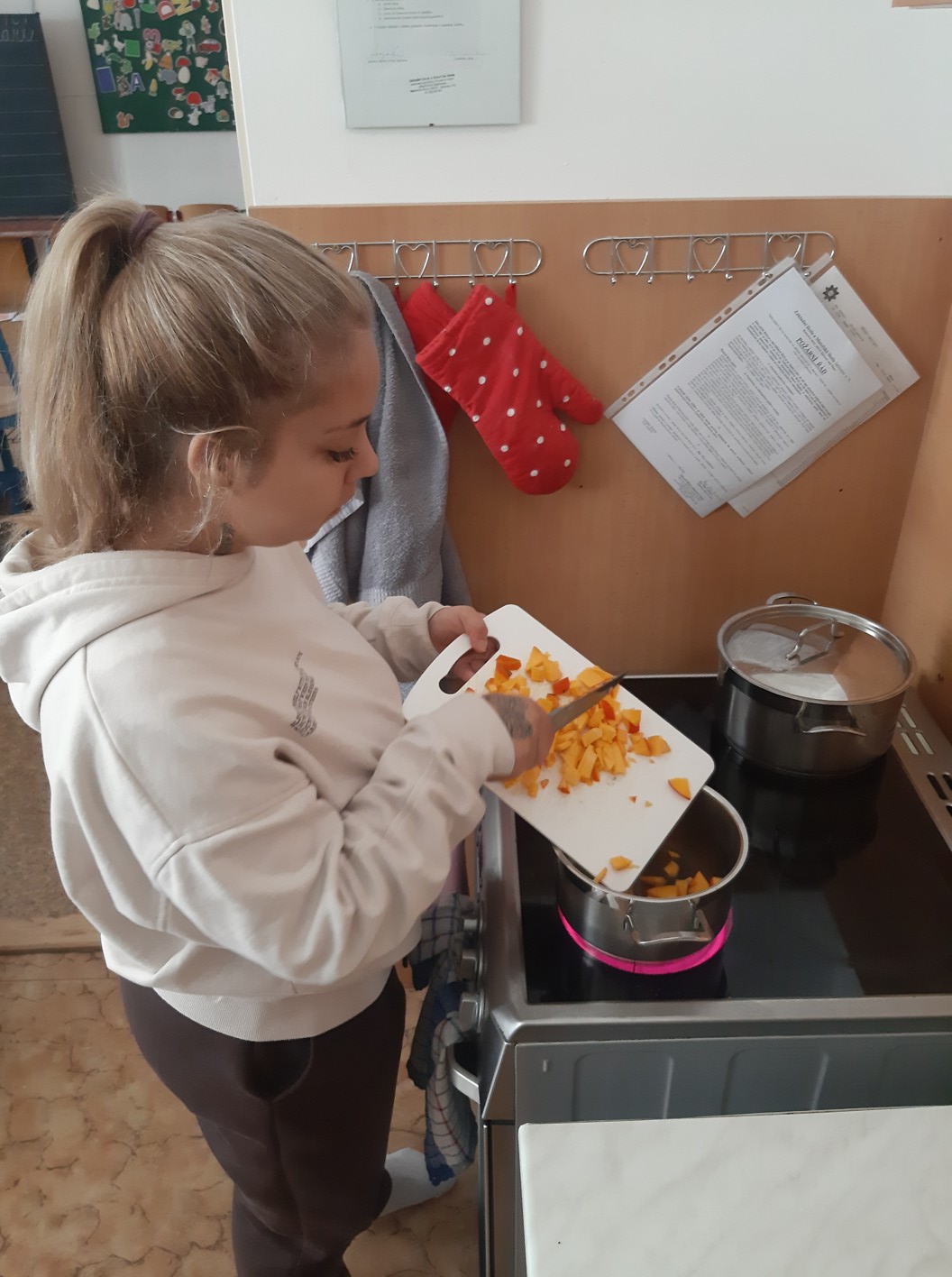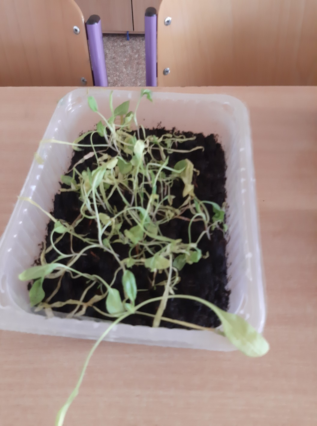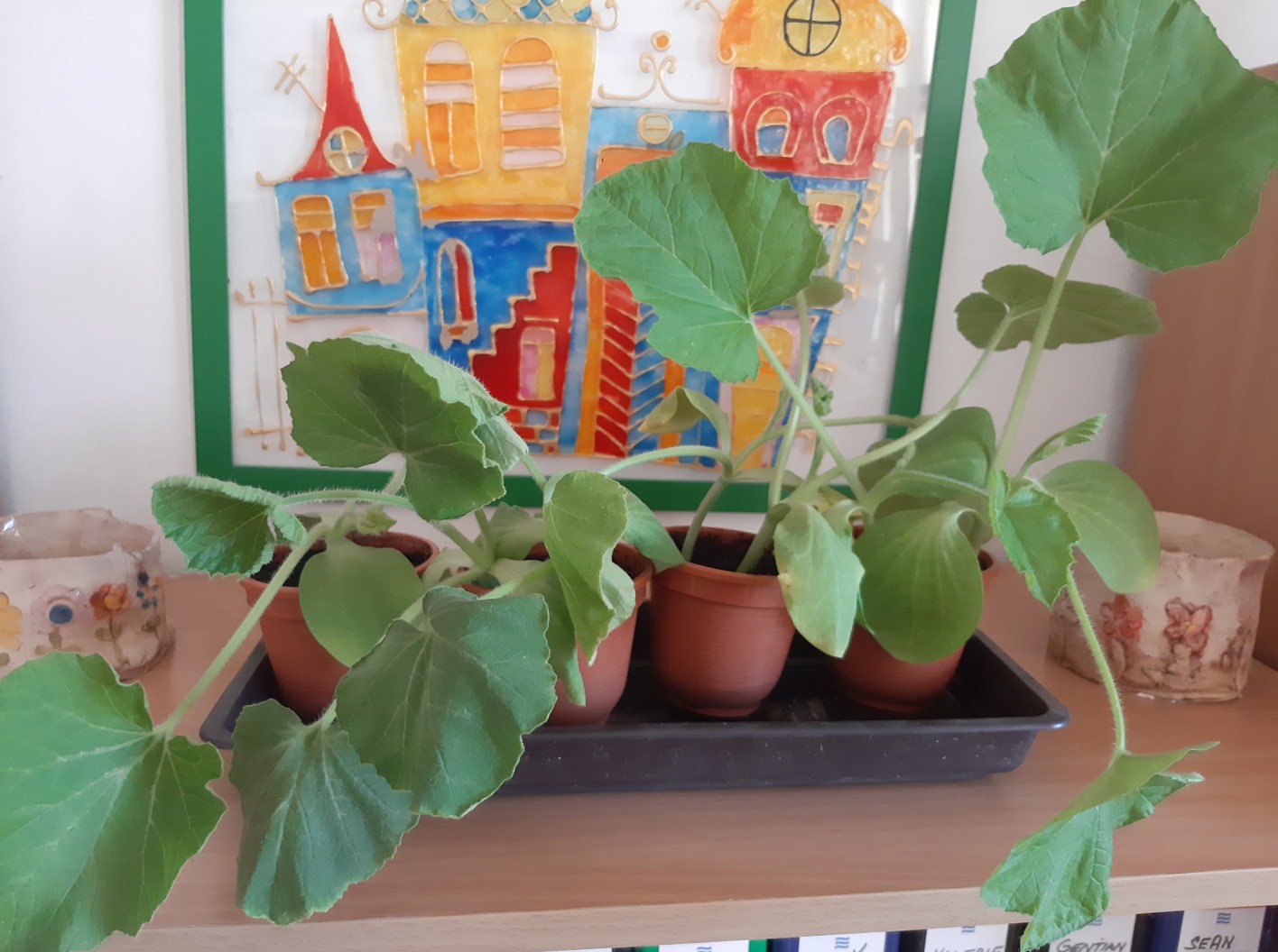 I letos jsme se pokusili ze semínek vypěstovat určité druhy zeleniny a bylin. Naseli jsme ve třídě špenát, papriku, dýni a mátu. Položili jsme to na sluníčko mezi okna a pečlivě rosili a zalévali a čekali až nám to začne růst. Již brzy jsme se dočkali prvních výhonků. Do truhlíku na zahradě jsme zasadili již naklíčené loňské brambory. V květnu jsme rostlinky z oken zasadili do záhonu na pozemku. Po prázdninách jsme přišli do školy a zjistili, že nám vyrostly brambory, dýně a máta. Rozhodli jsme se z úrody udělat dýňovo-bramborovou polévku. Vaření nás bavilo a polévka nám moc chutnala.