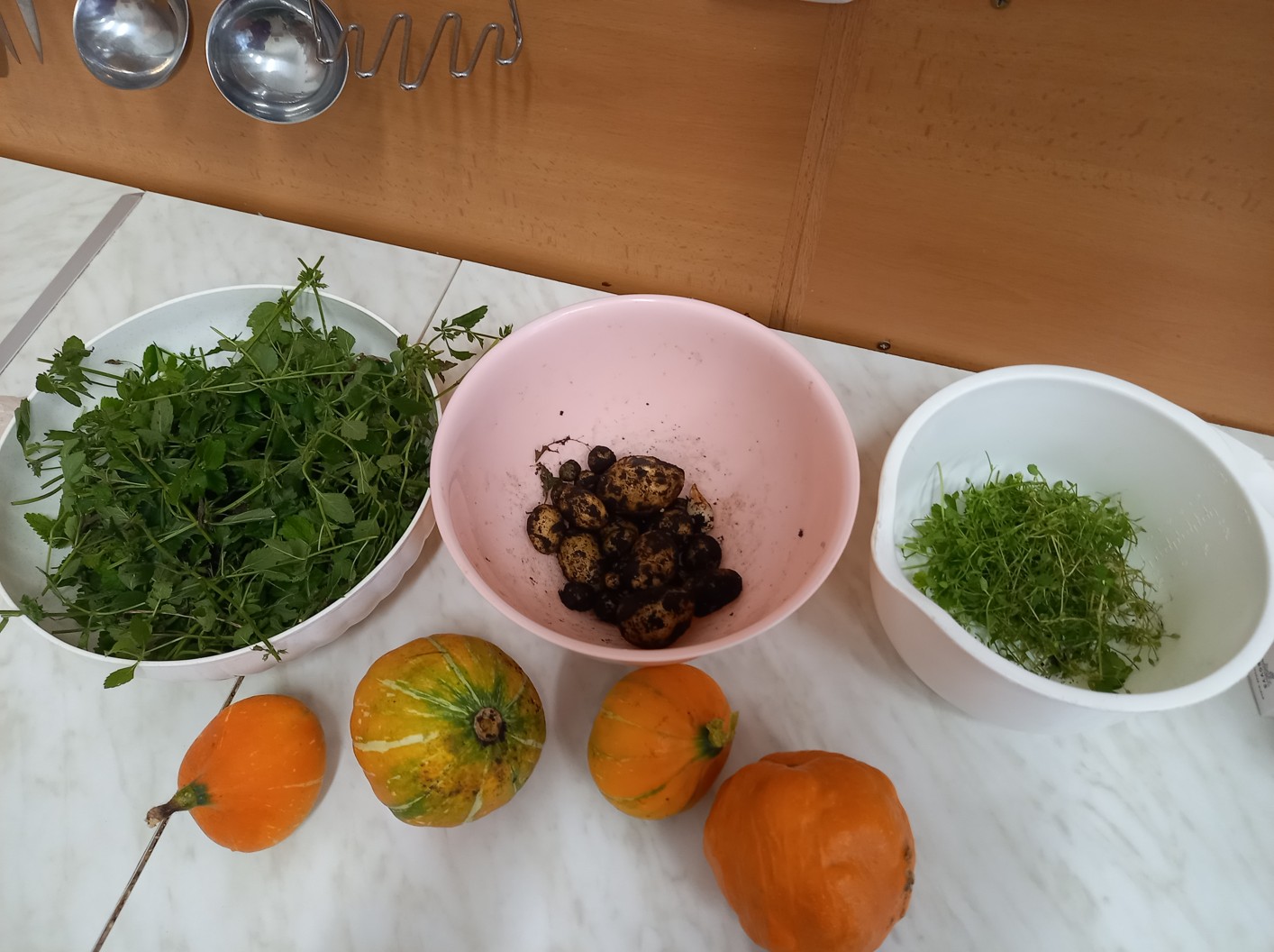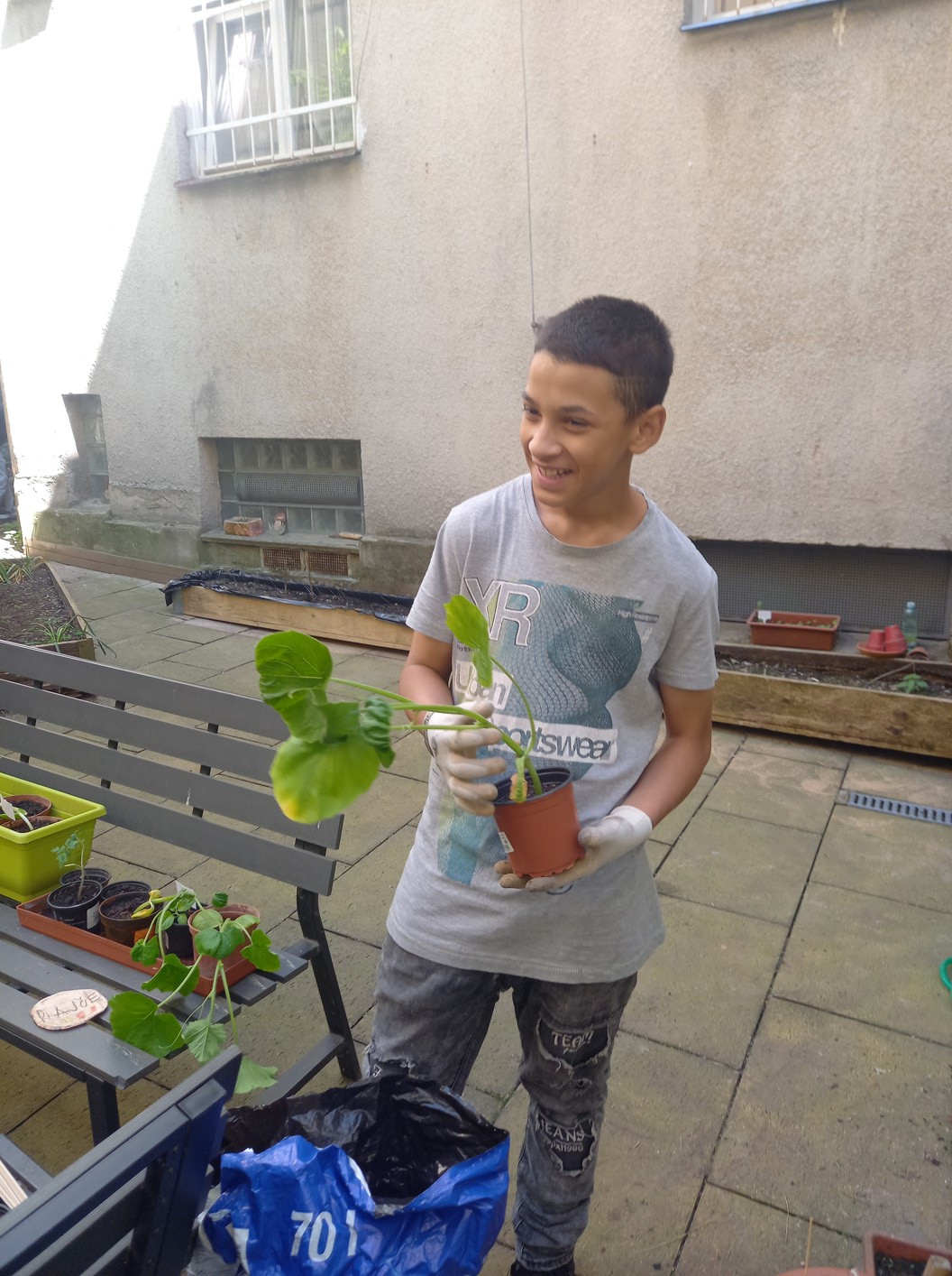 V loňském roce jsme zaseli a zasadili spousty zajímavých semínek, cibulek a hlíz. Také jsme se postarali o květinovou výzdobu našeho školního pozemku. Copak nám vyklíčilo ze semínek? Vysévali jsme nadvakrát, jelikož nám v první várce nic nevzešlo. Na druhý pokus se nám ujala nejlépe dýně a pár rajčátek, které jsme na konci loňského školního roku přesadili do našeho záhonu. Přímo jsme pak zasadili pár cibulek cibule a hlízy brambor. Vyseli jsme si také petrželku, ředkvičky a mrkev, z čehož se nám zadařila pouze petrželka. A co jsme sklidili v září? Na začátku nového roku nás čekalo velmi milé překvapení v podobě tří malých dýní, pěkné hromádky brambor a keříčku petrželky. Díky těmto surovinám jsme si uvařili za přispění dalších surovin a koření výbornou dýňovou polévku se smaženými cibulovými kroužky a bramboráky. Byli jsme naprosto nadšení, že jsme měli takovou úrodu. Záhonek jsme si zazimovali a připravili ho na příští rok.