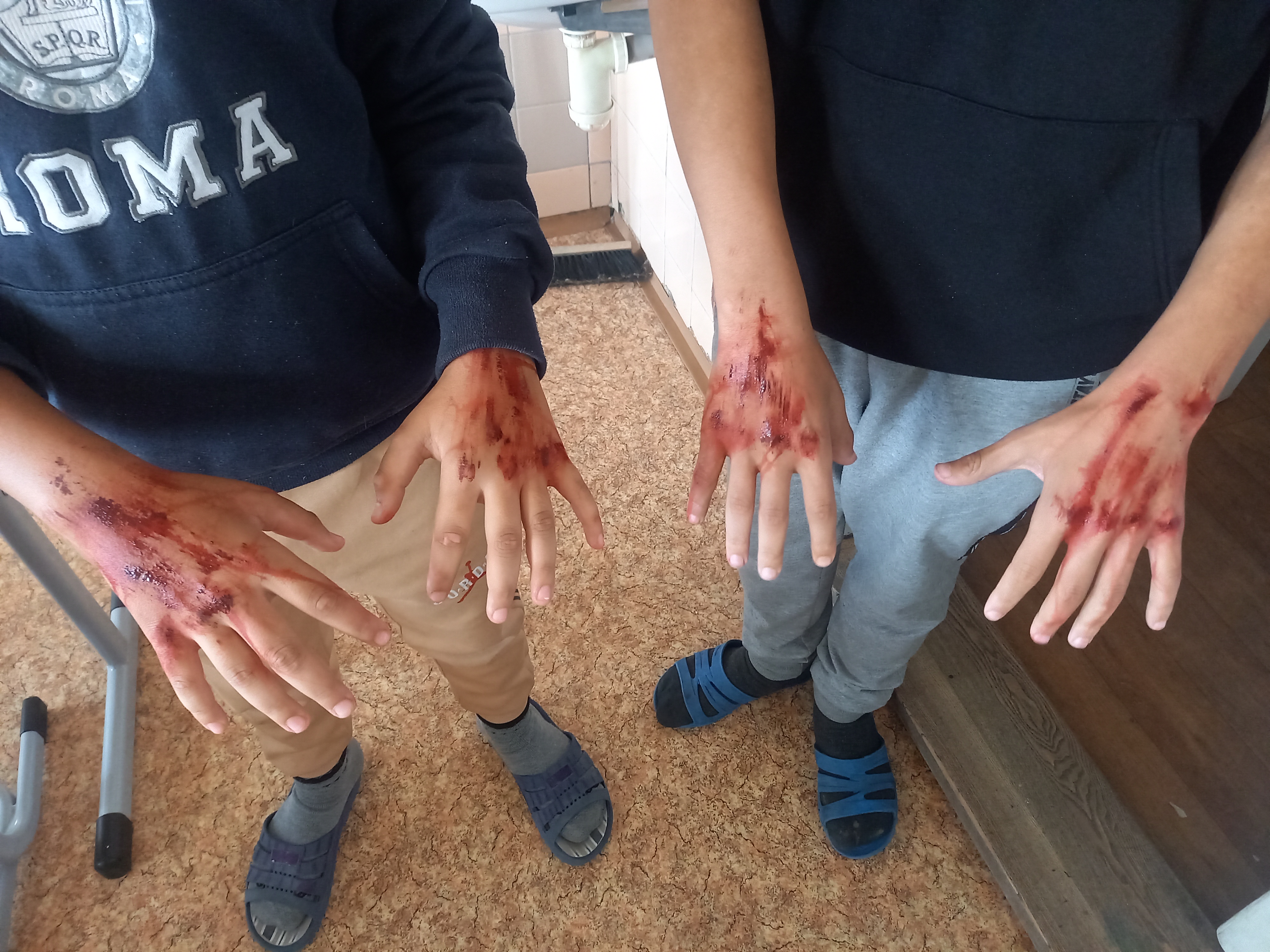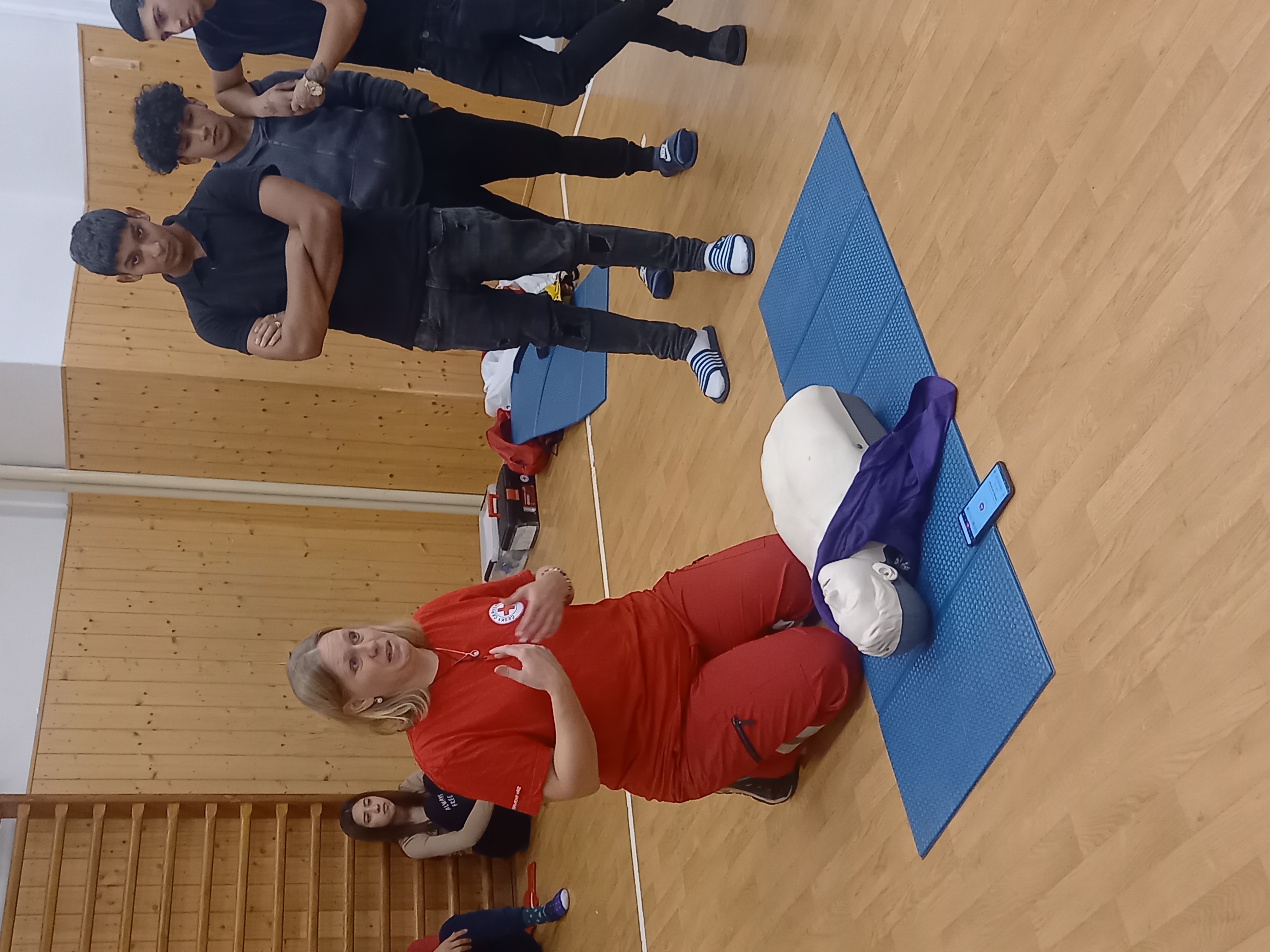 Na čtvrtek 10. 10. 2024 byl pro naše děti ze 7., 8. a 9. třídy připraven program s názvem „Doma, venku, ve škole, ve zdraví a v pohodě“. Jednalo se o přednášku a praktické ukázky první pomoci. Sešli jsme se v tělocvičně, kde paní ředitelka OS ČČK seznámila děti se zásadami poskytování první pomoci v různých situacích. Děti měly možnost vyzkoušet si v praxi ošetření různých zranění. Přednáška i ukázky byly velmi poutavé a zranění, která byla „namalovaná“ na kůži červenou barvou, byla více než realistická (jak je vidět na fotkách). Děti si mohly vyzkoušet masáž srdce, ošetření různých ran a zlomenin. Doufáme, že pokud se naše děti stanou svědky nějakého zranění, budou si vědět rady a budou umět poskytnout první pomoc.