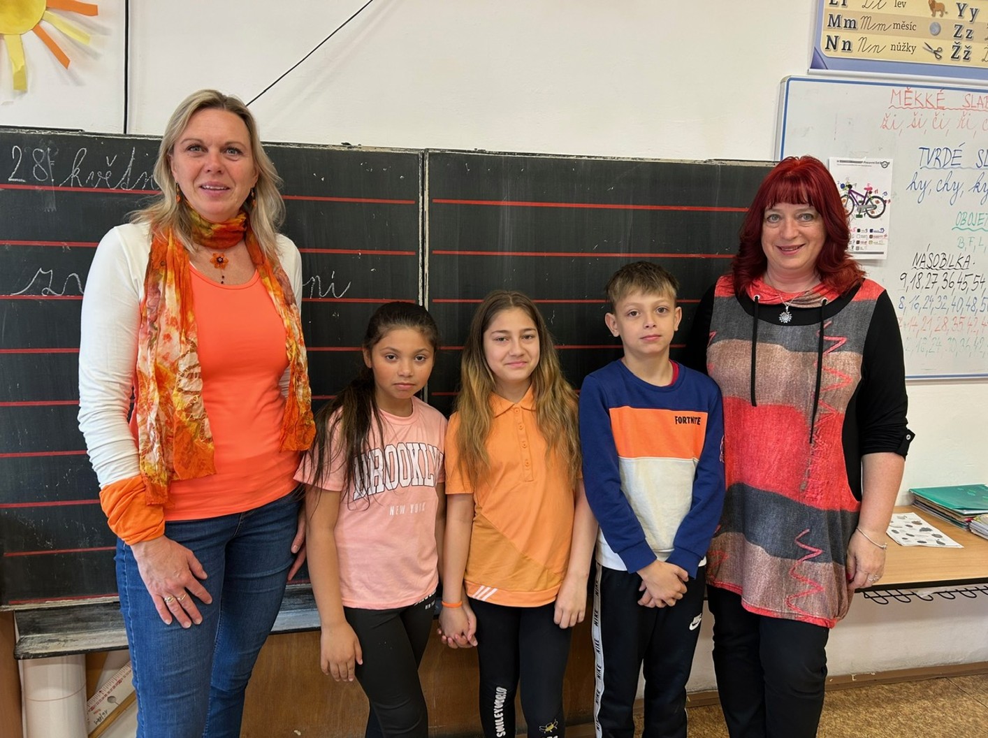 Bylo moc krásné sledovat a dokumentovat, jak nám škola barevně rozkvétá. Některé třídy to pojaly velmi zodpovědně a téměř každý den byly všechny děti v dané barvě, jiné třídy byly ve startovacím roce lehce rozpačité. Nejvíce barevnou třídou byly 2., 3. a 8. třída. Na modrý čtvrtek přišli v modré téměř všichni, a tak vyfotit společnou fotku na schodech byl pěkný oříšek. Věřím, že se tato milá tradice ujme a příští rok to rozjedeme znovu, tentokrát však v jiných barvách.